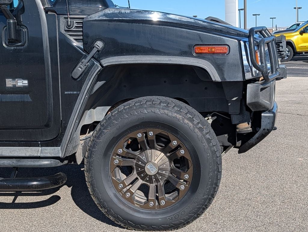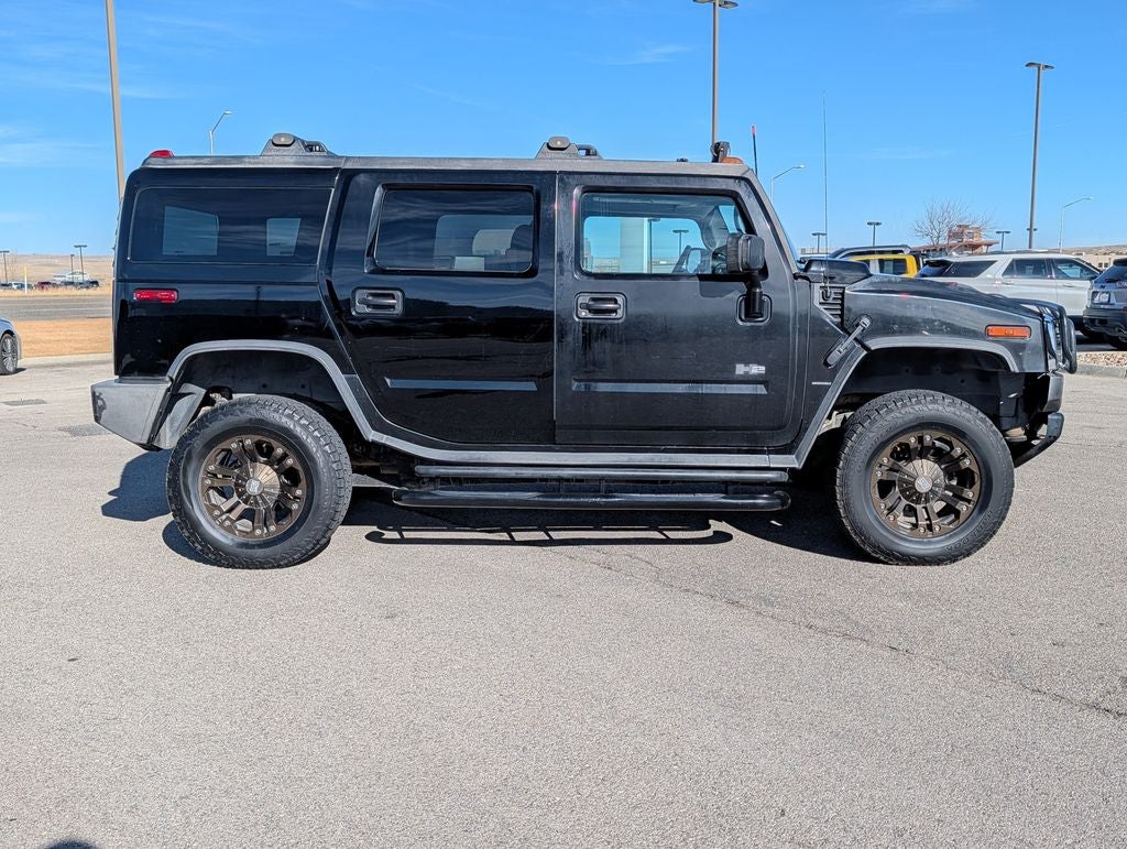 Certified. Black 2005 Hummer H2 4WD 4-Speed Automatic HD with Overdrive Vortec 6.0L V8 SFI Base Equipment Package, Standard Ride Suspension Package, Bargain Corral Certified, 17 x 8.5 Aluminum Wheels, 4-Wheel Disc Brakes, 4.10 Rear Axle Ratio, 9 Speakers, ABS brakes, Air Conditioning, Alloy wheels, AM/FM radio, Auto-dimming door mirrors, Auto-dimming Rear-View mirror, Automatic temperature control, Cassette, CD player, Compass, Driver door bin, Driver vanity mirror, Driver's Seat Mounted Armrest, Dual front impact airbags, Emergency communication system: OnStar, ETR AM/FM Stereo w/CD & Cassette, Front & Rear Removable Black Carpeted Floormats, Front anti-roll bar, Front Bucket Seats, Front dual zone A/C, Front License Plate Bracket, Front reading lights, Front Reclining Bucket Seats, Front wheel independent suspension, Fully automatic headlights, Garage door transmitter: HomeLink, Heated door mirrors, Heated front seats, Heated rear seats, Illuminated entry, Leather Seating Surfaces, Leather Shift Knob, Leather steering wheel, Memory seat, Occupant sensing airbag, Outside temperature display, Overhead console, Panic alarm, Passenger cancellable airbag, Passenger door bin, Passenger seat mounted armrest, Passenger vanity mirror, Power door mirrors, Power driver seat, Power passenger seat is Power driver seat and Power passenger seat is Power passenger seat and Power steering and Power windows and Power windows and Power windows and Power windows and Power windows and Power steering and Power to the people in the world.