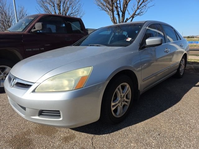 This 2006 Honda Accord EX 2.4 in Silver comes with the following features: 2.4L I4 DOHC i-VTEC 16V 5-Speed Automatic with Overdrive FWD 405-217-7000, great condition, and Bob Moore Nissan 4D Sedan, 2.4L I4 DOHC i-VTEC 16V, 5-Speed Automatic with Overdrive, FWD, Silver, Black w/Cloth Seat Trim, 16" Alloy Wheels, 6 Speakers, ABS brakes, Alloy wheels, CD player, Delay-off headlights, Front Bucket Seats, Heated door mirrors, Illuminated entry, Power door mirrors, Power moonroof, Remote keyless entry, Telescoping steering wheel, and Tilt steering wheel. Recent Arrival! Certified. Certification Program Details: Our 103-Point Certified Pre-owned inspection ensures that every used car we offer meets our high standards of quality and reliability. It covers every crucial aspect of the vehicle, from engine performance and transmission to electrical systems and safety features to identify any potential issues. This helps us address any existing concerns but also ensures that the car is in its best condition before it reaches you. Odometer is 80049 miles below market average! 24/34 City/Highway MPG. Call or Click today to reserve a test drive. Located in Norman on I-35 & Tecumseh Rd. (Exit 112). Bob Moore Nissan offers quick, easy and secure financing on most every vehicle in stock as well as extended Service & Parts hours for your convenience. Family owned for over 50 years, let us show you how easy it is to buy your next car at Bob Moore Nissan.