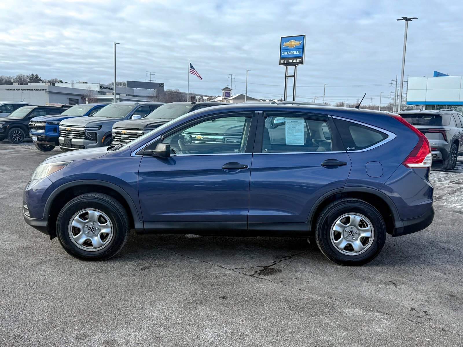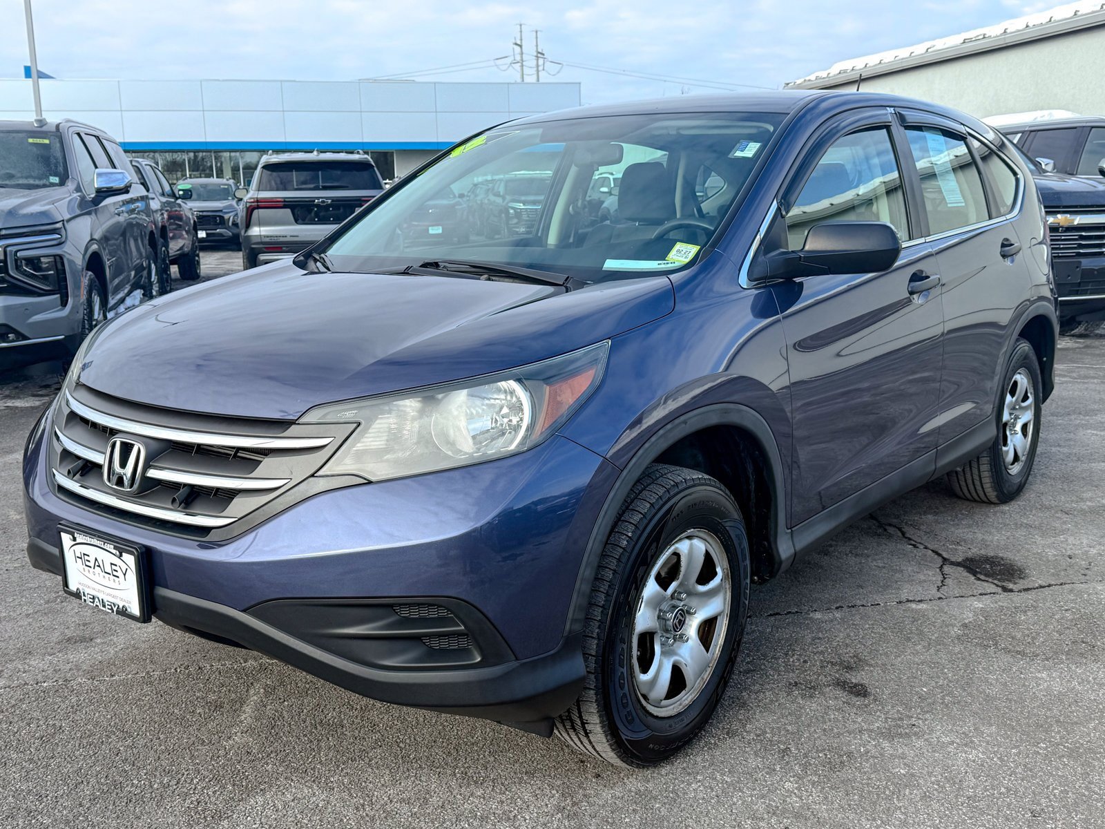 Certified. Twilight Blue 2012 Honda CR-V LX AWD 5-Speed Automatic 2.4L I4 DOHC 16V i-VTEC 16 x 6.5 Styled Steel Wheels, 4 Speakers, 4-Wheel Disc Brakes, 4.44 Axle Ratio, ABS brakes, Air Conditioning, AM/FM radio, AM/FM/CD Audio System w/4 Speakers, Brake assist, Bumpers: body-color, CD player, Cloth Seat Trim, Compass, Delay-off headlights, Driver door bin, Driver vanity mirror, Driver's Seat Mounted Armrest, Dual front impact airbags, Dual front side impact airbags, Electronic Stability Control, Exterior Parking Camera Rear, Four wheel independent suspension, Front anti-roll bar, Front Bucket Seats, Front reading lights, Illuminated entry, Low tire pressure warning, Occupant sensing airbag, Outside temperature display, Overhead airbag, Overhead console, Panic alarm, Passenger door bin, Passenger vanity mirror, Power door mirrors, Power steering, Power windows, Radio data system, Rear anti-roll bar, Rear seat center armrest, Rear window defroster, Rear window wiper, Reclining Front Bucket Seats, Remote keyless entry, Speed control, Speed-sensing steering, Split folding rear seat, Steering wheel mounted audio controls, Tachometer, Telescoping steering wheel, Tilt steering wheel, Traction control, Trip computer.
