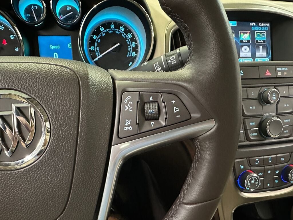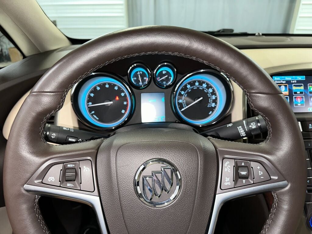 Clean. Fuel efficient 32 MPG Hwy/21 MPG City! Heated leather seats, sunroof, onboard communications system, premium sound system, back-up camera, audio system, AM/FM/SiriusXM stereo with MP3 CD player, USB and AUX port IntelliLink AM/FM/SiriusXM stereo with 7 color LED touch screen display and MP3 CD player, USB and AUX port, MP3/WMA playback, iPod support and upgradeable software, includes phonebook access, voice recognition for audio, phone, phonebook and music selection, Pandora and Stitcher Smartphone compatible, SiriusXM weather and data services, and software Bluetooth and Smartphone interface upgradeable. Buick Leather Group with Mocha Bronze Metallic exterior and Cashmere interior features a 4 cylinder engine with 180 HP at 6700 RPM.