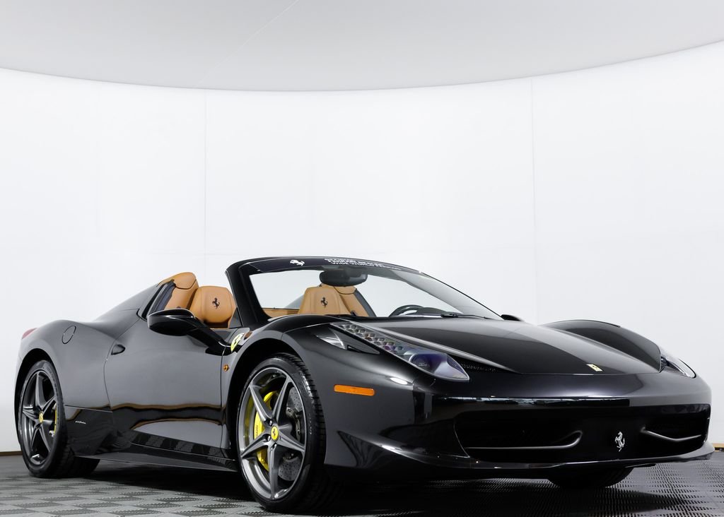 Wide World Ferrari is proud to present this exceptional 2013 Ferrari 458 Spider, a beautifully specified example of Ferrari's legendary naturally aspirated mid-engine V8 convertible. Showing just 10,160 miles and accompanied by a clean Carfax, this 458 Spider represents the final era of Ferrari's naturally aspirated V8 supercars. Finished in Nero Daytona, the exterior exudes understated aggression and timeless elegance. The deep metallic black paint highlights the dramatic curves and aerodynamic sculpting that define the 458's Pininfarina design, while forged wheels finished in metallic Grigio Ferro add a purposeful motorsport character. Inside, the cabin is trimmed in rich Cuoio leather, creating a warm and luxurious contrast to the Nero Daytona exterior. Nero special stitching runs throughout the interior, maintaining a clean and sophisticated aesthetic, while the Nero leather headliner further elevates the sense of craftsmanship. The interior grilles are finished in leather to match the surrounding trim, creating a cohesive and bespoke feel throughout the cockpit. A standout feature of this particular 458 Spider is the highly sought-after carbon fibre racing seats. Rarely seen and extremely desirable among Ferrari enthusiasts and collectors, this vehicle represents the final era of Ferrari's naturally aspirated V8 supercars.