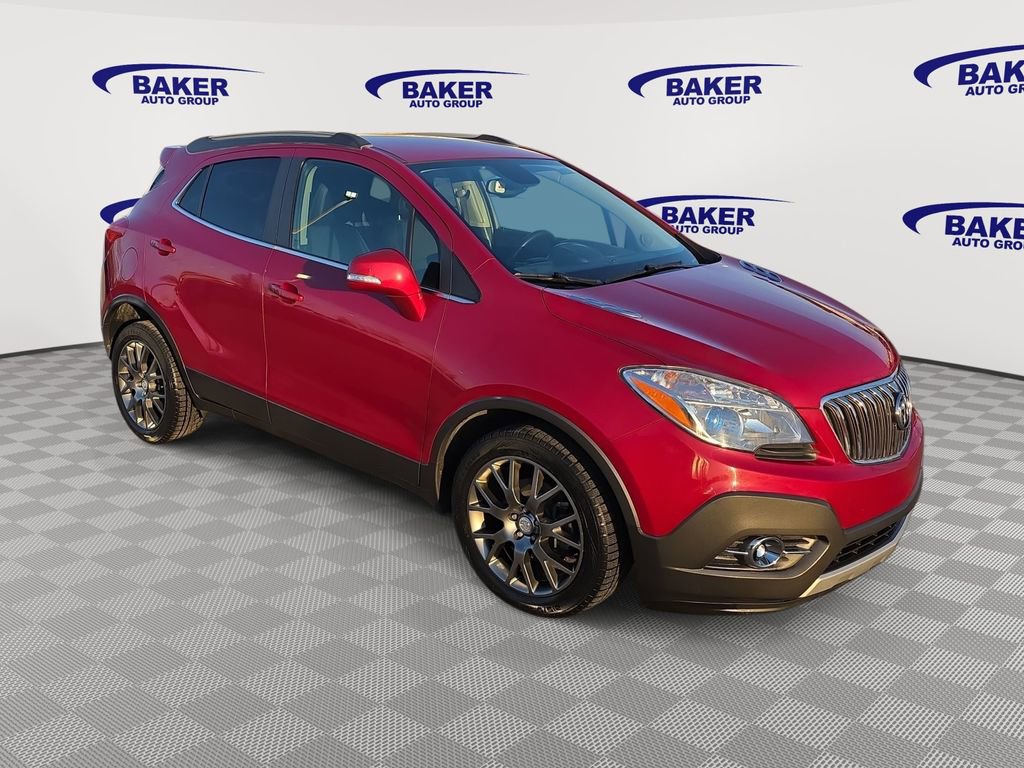 Elevate your driving experience with this meticulously maintained 2016 Buick Encore Sport Touring. This compact SUV boasts a striking Winterberry Red Metallic exterior, complemented by a well-appointed interior that exudes sophistication and style. Beneath the sleek exterior, this Encore Sport Touring is powered by a responsive 1.4L I4 Turbocharged engine, delivering an impressive 28 city and 34 highway miles per gallon. The 6-Speed Automatic Electronic Transmission with Overdrive ensures a smooth and efficient ride, while the Front-Wheel Drive configuration provides confident handling in a variety of driving conditions. This 2016 Buick Encore Sport Touring is a remarkable blend of style, technology, and performance. With a list price of $12,555, it represents an exceptional value in the compact SUV market. Experience the difference for yourself by scheduling a test drive today.