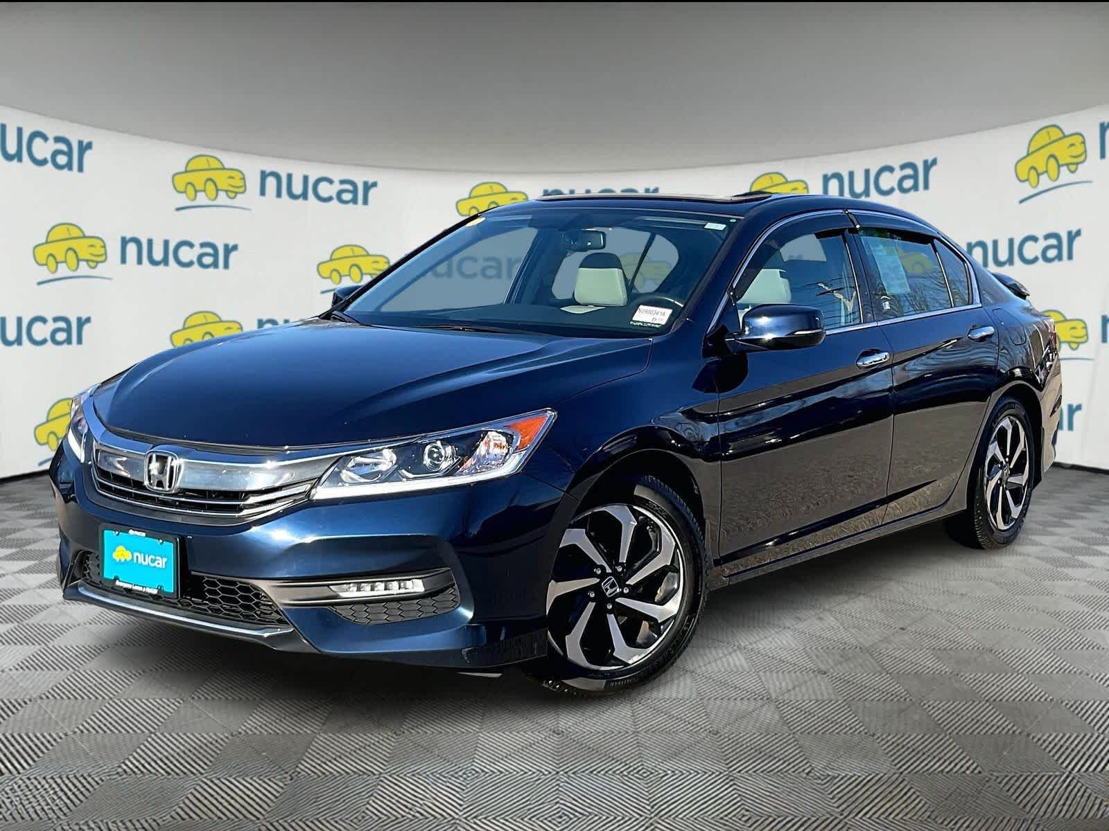 HondaTrue Used Certified, Excellent Condition. Obsidian Blue Pearl exterior and Gray interior, EX-L trim. Sunroof, Heated Leather Seats, Premium Sound System, Alloy Wheels, Back-Up Camera, FULLY SERVICED and READY FOR DELIVERY. NUCAR Honda OF WESTFORD has the HIGHEST SET OF STANDARDS IN THE INDUSTRY. FREE CARFAX report! Right up front! No Games, internal work order provided before your buy. The Accord continues to impress with its responsive handling, composed ride, abundance of interior room, comprehensive feature set, fuel-efficient yet powerful engines and high crash test scores. PRICES REDUCED OR INCREASED BASED ON MARKET SUPPLY AND DEMAND! WE USE HIGH TECH SOFTWARE TO LOOK ONLINE AND MAKE SURE OUR ONLINE PRICING IS THE LOWEST IN THE MARKET AREA. PLEASE DO NOT WAIT, OUR VEHICLES SELL FAST. (We strive to provide you with up to the minute accuracy with regards to our pre-owned inventory selection. Please note that some of our vehicles may appear online prior to undergoing our rigorous 160 pt. safety inspection. Our all sale prices are based on paid in full day of sale to qualify for pricing incentives. We do not hold cars. prices on dealer website is valid price. Not responsible for 3rd party price errors. See dealer for full details.