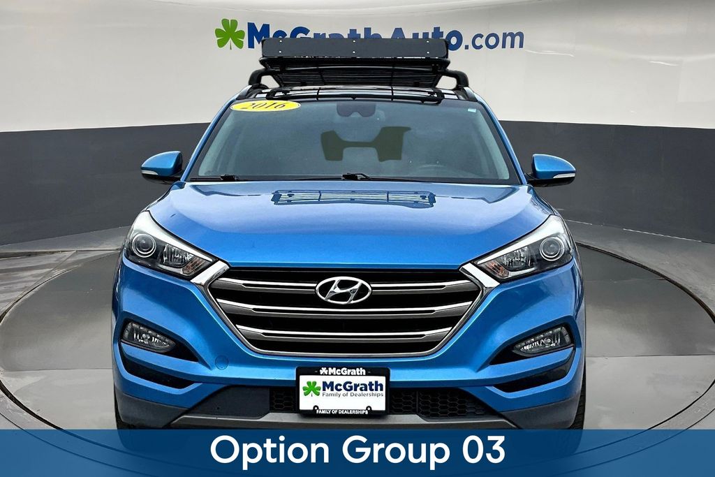 Discover the perfect blend of style, technology, and performance in the 2016 Hyundai Tucson Limited. This stunning SUV boasts a sleek, modern exterior in a striking Blue hue, complemented by a spacious and well-appointed interior that will elevate your driving experience. Powered by a 1.6L I4 DGI Turbocharged engine, the Tucson Limited delivers an exceptional balance of power and efficiency, with an EPA-estimated 25 mpg in the city and 30 mpg on the highway. Its 7-Speed Automatic transmission and Front-Wheel Drive ensure a smooth, responsive ride, making it the perfect companion for your daily commute or weekend adventures. This Tucson Limited is also a certified pre-owned vehicle, meaning it has undergone a rigorous inspection and comes with a comprehensive warranty, giving you the peace of mind and confidence you deserve. With its exceptional value, remarkable features, and proven reliability, the 2016 Hyundai Tucson Limited is the perfect choice for the discerning SUV buyer. Don't miss your chance to experience this exceptional vehicle. Schedule a test drive today and discover the difference the Tucson Limited can make in your driving life.