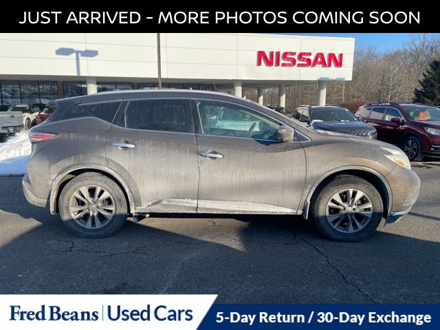 Recent Arrival! 2016 Nissan Murano SL SL 3.5L V6 DOHC CVT with Xtronic AWD 4D Sport Utility Java Metallic Local Trade, Great Service History, Triton Certified Classic Vehicle, 3 Month / 4,000 Mile Comprehensive Warranty, Free First Oil Change, 5 Day Return / 30 Day Exchange, Auto Reward Program, CVT with Xtronic, AWD. Clean CARFAX. Certified. Certification Program Details: Triton Certified Shield Classic • 3-Month or 4,000-Mile Comprehensive Coverage ($100 deductible) • 100+ Multipoint Inspection • PA State Inspection & Emissions Test • Oil, Lube, & Filter Service Completed • 5-Day Return Policy1 • 30-Day Exchange Policy2 • CARFAXTM Report • AutoRewards Membership • See salesperson for additional offers & complete details. For better peace of mind all our used vehicles have a 127-point inspection and come with a 5-day return, 30-day exchange (As-Is vehicles are excluded). Our exclusive Auto Rewards Program provides better value with $50 Service Gift Certificate, Free Pa State Safety inspections, discounts for local merchants and more. Plus, you can earn up to $2000 towards your next vehicle just by servicing with Fred Beans! As Fred Beans always says, our used cars are better because our reputation depends on it. All vehicles are subject to prior sale. Price does not include applicable tax, title, license, processing and/or $594 documentation fees. Vehicles shown at different locations are not currently in our inventory (Not in Stock) but can be made available to you at our location within a reasonable date from the time of your request, not to exceed one week. Residency restrictions may apply.