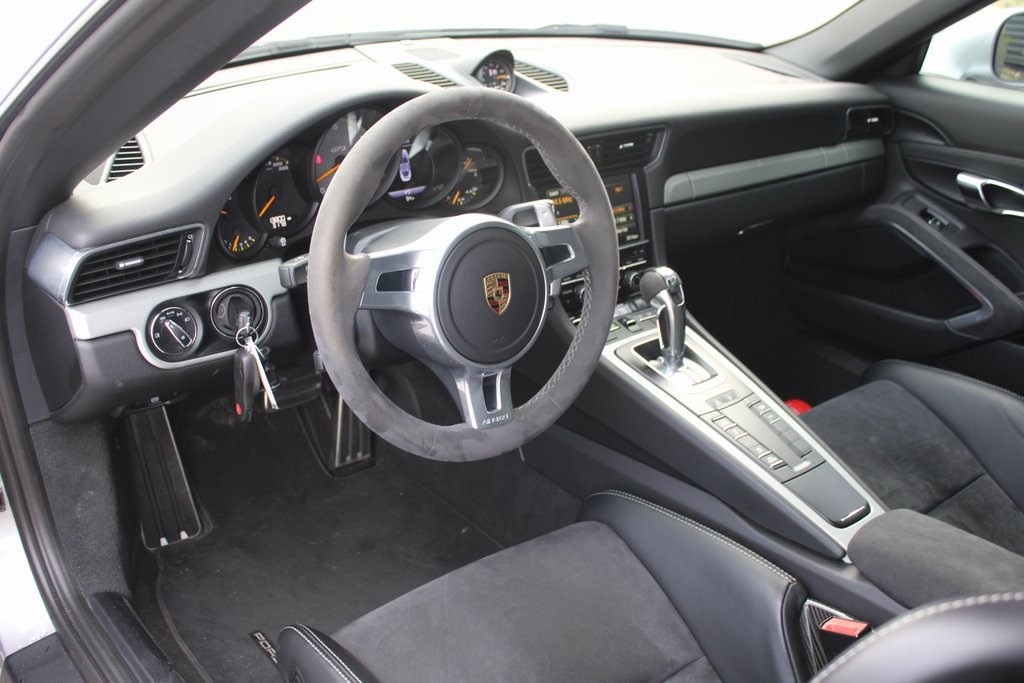 Porsche Approved Certified Pre-Owned. The Cleanest 991.1 GT3 We Have Seen! Bi-Xenon Headlights in Black incl. Porsche Dynamic Light System (PDLS). Clear Glass Taillights. SportDesign exterior mirror lower trims painted in Black (high-gloss). Front Axle Lift System. Sport Chrono Package (Porsche Track Precision App and Preparation for Lap Trigger). Extended Range Fuel Tank, 23.9 gal. Wheels Painted in Black i.c.w. 911 Turbo Wheels. Automatically Dimming Mirrors with Integrated Rain Sensor. Light Design Package. Full Bucket Seats. Smoking Package. Floor Mats. Luggage Net in Passenger Footwell. Fire Extinguisher. Porsche Communication Management (PCM) incl. Navigation Module.