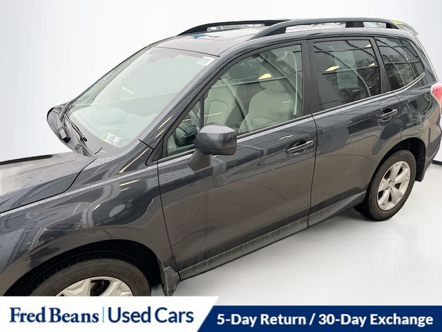 Recent Arrival! 2016 Subaru Forester 2.5i Premium 2.5L 4-Cylinder DOHC 16V VVT Lineartronic CVT AWD 4D Sport Utility Dark Gray Metallic Local Trade, Great Service History, Non Smoker, Triton Classic 3 month 4,000 mile Limited Comprehensive Warranty, All-Weather Package & EyeSight, Auto-Dimming Mirror w/Compass & HomeLink, Exterior Parking Camera Rear, EyeSight System, Heated Exterior Mirrors, Heated Front Seats, Power driver seat, Power moonroof, Windshield Wiper De-Icer. Odometer is 7540 miles below market average! Certified. Certification Program Details: Triton Certified Shield Classic • 3-Month or 4,000-Mile Comprehensive Coverage ($100 deductible) • 100+ Multipoint Inspection • PA State Inspection & Emissions Test • Oil, Lube, & Filter Service Completed • 5-Day Return Policy1 • 30-Day Exchange Policy2 • CARFAXTM Report • AutoRewards Membership • See salesperson for additional offers & complete details. For better peace of mind all our used vehicles have a 127-point inspection and come with a 5-day return, 30-day exchange (As-Is vehicles are excluded). Our exclusive Auto Rewards Program provides better value with $50 Service Gift Certificate, Free Pa State Safety inspections, discounts for local merchants and more. Plus, you can earn up to $2000 towards your next vehicle just by servicing with Fred Beans! As Fred Beans always says, our used cars are better because our reputation depends on it.