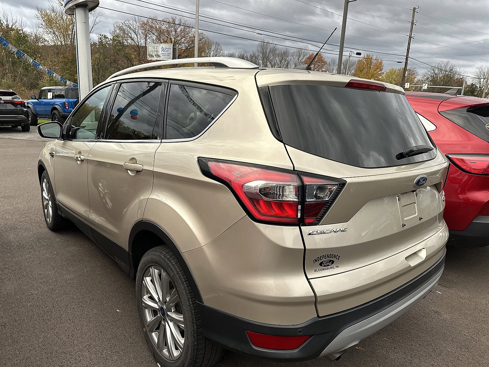 Come see this 2017 Ford Escape Titanium. Its Automatic transmission and Intercooled Turbo Regular Unleaded I-4 1.5 L/91 engine will keep you going. This Ford Escape has the following options: White Gold Metallic, Engine: 1.5L EcoBoost -inc: auto start-stop technology (STD), Charcoal Black, heated leather-trimmed buckets with 60/40 rear seat -inc: 10-way power driver and passenger seat with driver memory and driver and passenger lumbar support, Wheels: 18" Sparkle Silver-Painted Aluminum, Variable Intermittent Wipers with Heated Wiper Park, Trunk/Hatch Auto-Latch, Transmission with Driver Selectable Mode and Oil Cooler, Tires: P235/50R18 BSW AS, and SYNC Services Mobile Hotspot Internet Access. See it for yourself at Independence Ford, 3101 Columbia Boulevard Route 11, Bloomsburg, PA 17815.