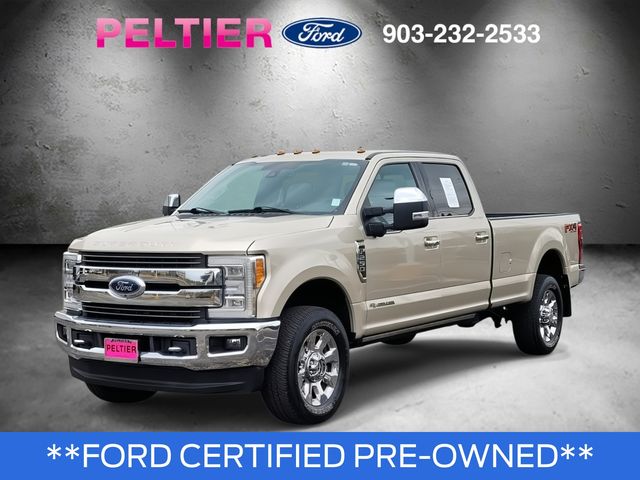Recent Arrival! Clean Carfax. Carfax One-Owner. White Gold 2017 Ford Power Stroke 6.7L V8 DI 32V OHV Turbodiesel 4D Crew Cab F-250SD King Ranch TorqShift 6-Speed Automatic 4WD Certified.