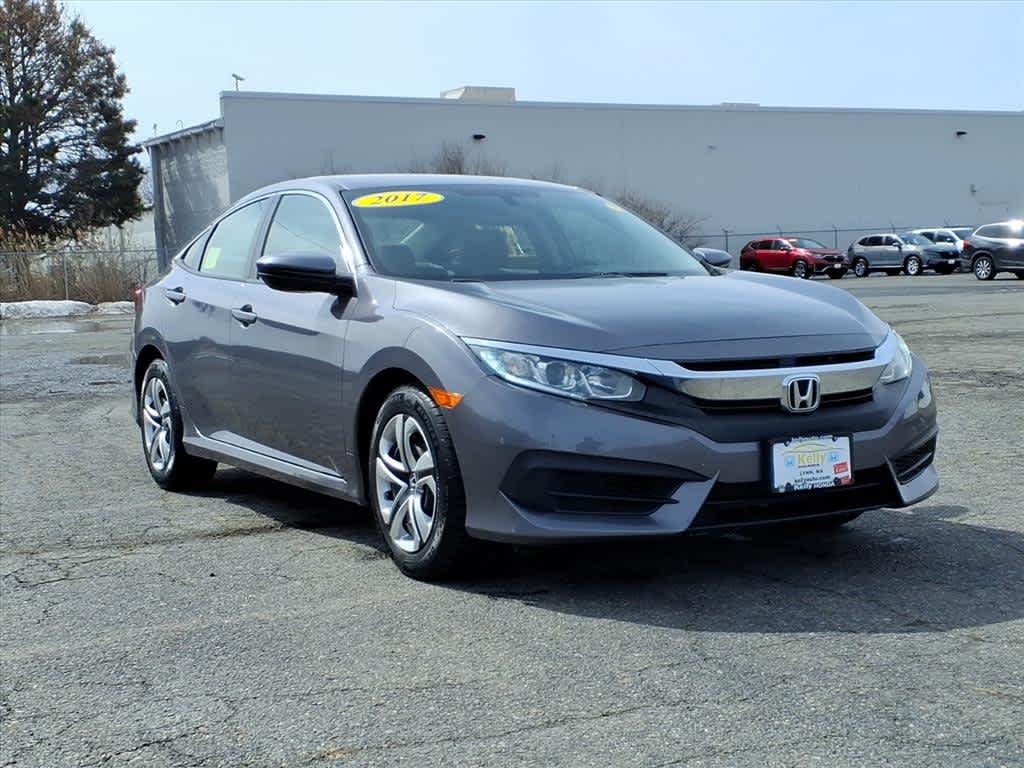 Excellent Condition. LX trim, Modern Steel Metallic exterior and Black interior. Bluetooth®, iPod/MP3 Input, Back-Up Camera, Serviced here, Non-Smoker vehicle, Originally bought here, Clean CARFAX report! New Wiper Blades. An excellent all-arounder, the newest Civic drives well no matter which version you pick. Out on the highway, the Civic offers a composed ride quality that doesn't get overly floaty or harsh. No matter how you look at it, the 2017 Honda Civic is one of the best cars in its class. -Edmunds.com. Excellent Condition. We Make It Easy - If we advertise it, we'll have it when you get here. It's easy, it's honest and it's guaranteed! Call 781-595-5252 today to reserve your guest demonstration and test drive!
