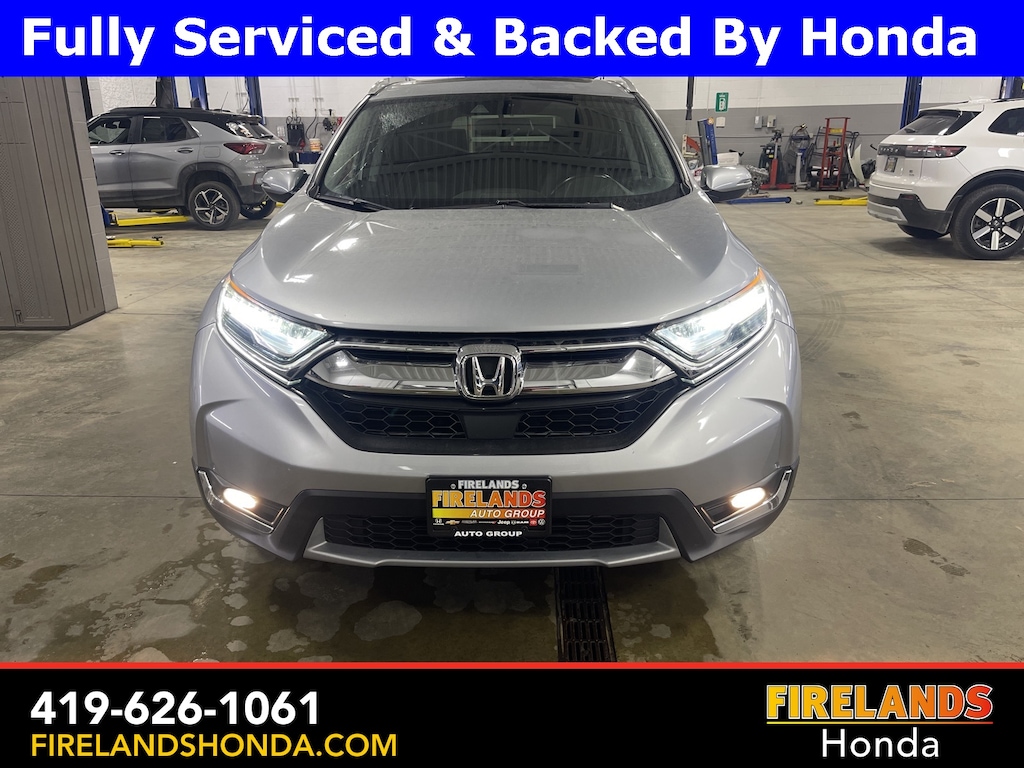 Firelands Honda is proud to offer this good-looking 2017 Honda CR-V in Lunar Silver Metallic. This CR-V has been checked by our award winning service department. Hot features include: Bluetooth Hands Free, Back Up Camera, Navigation / GPS, Remote Start, Local Trade, Adaptive Cruise Control, Service Records Available, All-Wheel Drive, Heated Leather Seats, Locally Owned New Car Trade, Lane Departure Warning, Apple Carplay/Android Auto, Blind Spot Detection, Fog Lights, Automatic Emergency Braking, Forward Collision Warning, Rear Cross Traffic Alert, Honda Certified, Clean CARFAX, One Owner, No Accidents, Power Liftgate, Memory Seats. Certified.