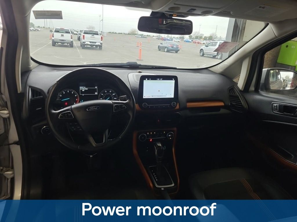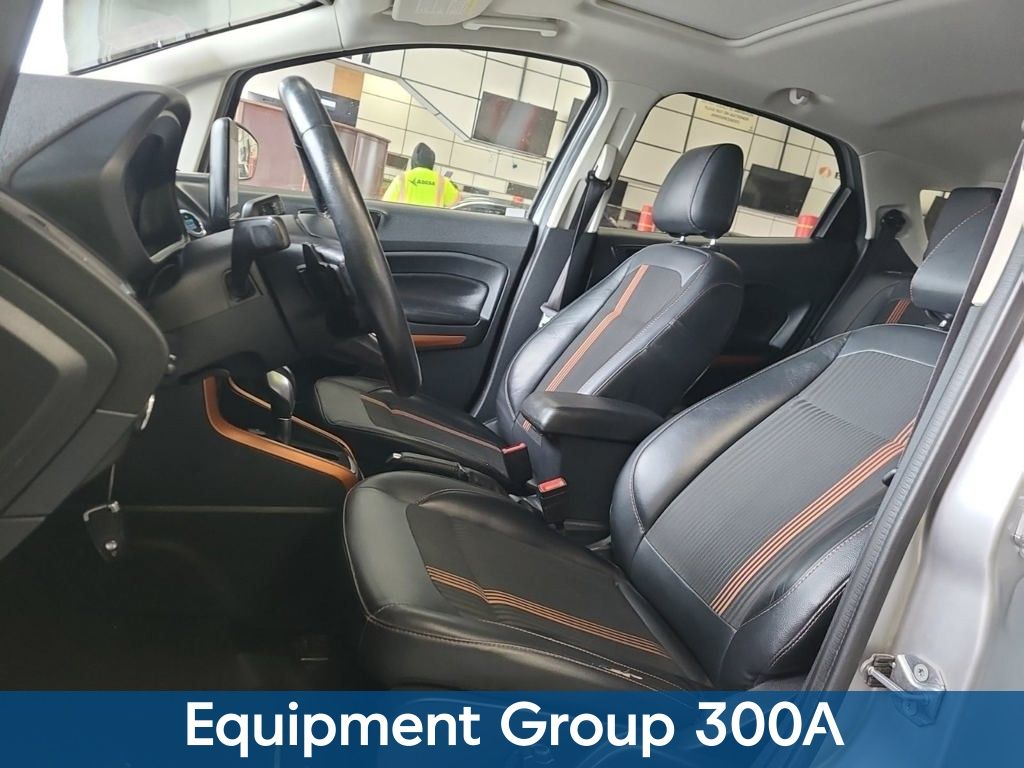 Discover the perfect blend of style, capability, and technology in this 2018 Ford EcoSport SES. With its sleek silver exterior and impressive 4WD powertrain, this compact SUV is ready to take on any adventure. Packed with must-have features, this EcoSport SES offers the ultimate in convenience and connectivity. Enjoy the convenience of the SYNC 3 infotainment system, which seamlessly integrates your smartphone for hands-free calls, music, and navigation. Stay comfortable year-round with automatic climate control and heated front seats. And with the available power driver's seat, you'll find your perfect driving position with ease. Safety is also a top priority, with a comprehensive suite of advanced driver-assistance technologies. From the rearview camera and rear parking sensors to the suite of airbags and electronic stability control, you can drive with confidence knowing you and your passengers are well-protected. Boasting an impressive 29 mpg on the highway, this EcoSport SES delivers the perfect balance of performance and efficiency. Its 2.0L I4 engine and 6-speed automatic transmission provide the power you need, while the intelligent 4WD system ensures you can tackle any terrain with ease. This Ford EcoSport SES has been meticulously inspected and certified, giving you the peace of mind of a like-new vehicle at a great value. With low miles and a comprehensive warranty, it's the smart choice for your next SUV. Experience the ultimate in style, technology, and capability with this 2018 Ford EcoSport SES. Visit our showroom today to take it for a test drive and discover why it's the perfect fit for your lifestyle.