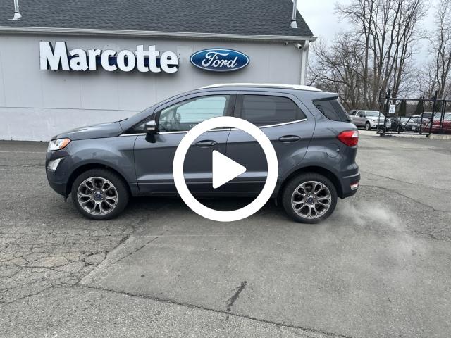There's no reason to head to any other Ford dealership, Massachusetts drivers rely on Marcotte Ford for quality automobiles they can depend on for years to come. You can trust the experienced Holyoke sales team at Marcotte Ford to find you a great deal on a new or pre-owned vehicle. With an expansive, diverse selection of new and used cars, as well as a qualified and experienced service team, we have all you need when it comes to purchasing, financing, and maintaining your Ford! Visit our site, where customers can not only find a vehicle, but also get a price quote, browse specials, apply for credit, order parts, and even ask questions to our highly knowledgeable staff. All Marcotte used vehicles are fully inspected, serviced and ready to go! When it comes to quality Ford dealers, customers in Massachusetts and the surrounding areas can always depend on Marcotte Ford in Holyoke. Visit us 1025 Main Street, Holyoke, MA 01040. Don't miss your chance to drive this vehicle home. This 2018 Ford EcoSport Titanium is a well-equipped and versatile SUV that offers an exceptional driving experience. With its 2.0L I4 Ti-VCT GDI engine and 6-speed automatic transmission with 4WD, this EcoSport delivers a confident and efficient performance, achieving an impressive 23 MPG in the city and 29 MPG on the highway. The exterior of this EcoSport is finished in a stylish Gray color, complemented by the sleek and modern design that sets it apart from the competition. The vehicle's impressive list of features, including the Navigation System, 10-speaker audio system, and Power moonroof, provide a premium and well-appointed driving experience. Inside, the EcoSport Titanium boasts a range of comfort and convenience features, such as Perforated Leather-Trimmed Heated Bucket Seats, Dual-Zone Automatic Climate Control, and a SYNC 3 Communications & Entertainment System with Apple CarPlay and Android Auto compatibility. These features ensure a comfortable driving experience. In addition to its impressive list of features, this certified pre-owned EcoSport is environmentally friendly with low emissions.