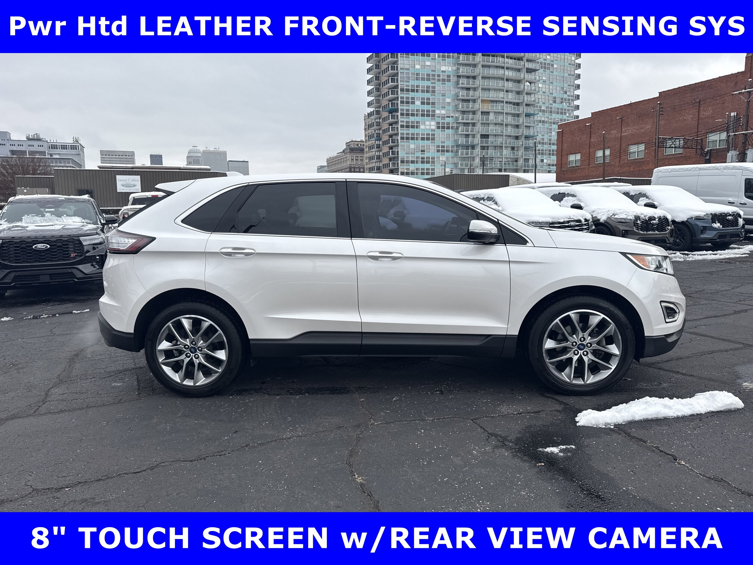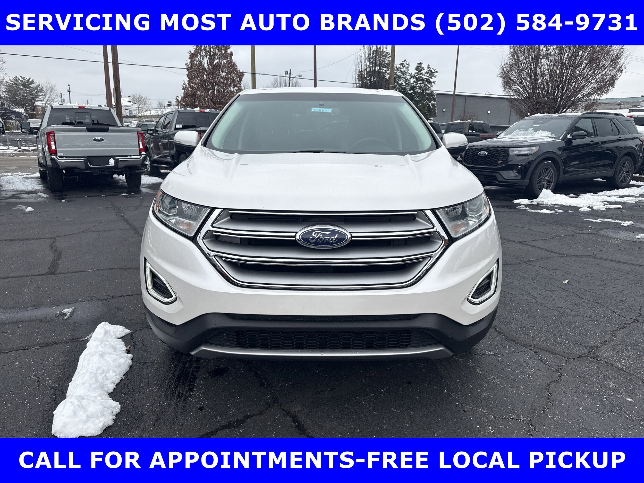 FORD BLUE ADVANTAGE BLUE CERTIFIED WARRANTY* Local one owner new Ford trade-2018 Edge Titanium Twin Scroll 2.0L EcoBoost-POWER heated leather front seats-20 premium alloys-8 touch screen with rear view camera-reverse sensing system-Sony premium audio with 12 speakers-leather wrapped steering wheel-dual zone auto temperature-power heated mirrors. Shop & buy from home. Very clean condition. Free Metro delivery available. Autocheck vehicle report 'zero' reported accidents. Call (502) 584-9731 for information on used vehicles. James Collins Ford-Louisville KY www.jamescollinsford.com, plus tax license, & fees. Price does not include $389.50 pre/post delivery preparation admin fee, dealer installed accessories if any, state and local taxes or state title fees. Large selection of highest quality pre-owned, Ford Gold & Ford Blue Advantage certified Ford vehicles for less, new inventory arriving daily, if you don't see what you want, we can find it for you at no additional charge. Free delivery in Louisville Metro area. We offer 15 approved lenders to choose from: local and regional credit unions, Ford Motor Credit, major and regional banks, secondary finance sources and other lending institutions. We can establish or re-establish credit and pay off your current vehicle even as much as $10,000 in negative equity.
