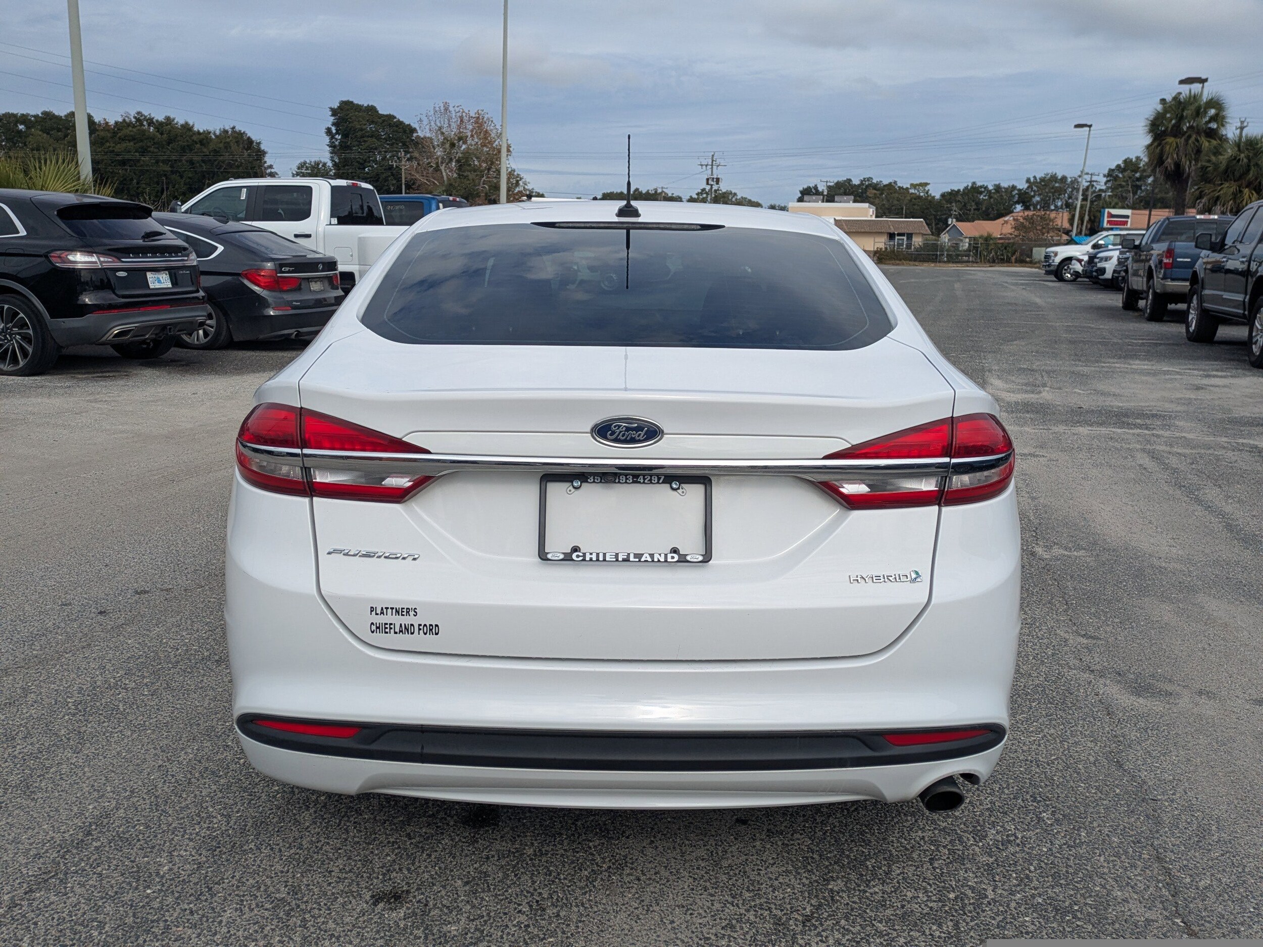 Delivers 41 Highway MPG and 43 City MPG! This Ford Fusion Hybrid delivers a Gas/Electric I-4 2.0 L/122 engine powering this Variable transmission. ENGINE: 2.0L IVCT ATKINSON CYCLE I-4 HYBRID (STD), Wireless Phone Connectivity, Wheels: 17" Sparkle Silver Painted Aluminum. This Ford Fusion Hybrid Comes Equipped with These Options Trunk Rear Cargo Access, Trip Computer, Transmission: E-CVT Automatic, Tires: P225/50R17 BSW, Tire Specific Low Tire Pressure Warning, Tire Mobility Kit, SYNC Communications & Entertainment System -inc: enhanced voice recognition, 911 Assist 4.2" LCD screen in center stack, AppLink and one smart charging USB port, Strut Front Suspension w/Coil Springs, Speed Sensitive Variable Intermittent Wipers, Smart Device Integration. Stop By Today Come in for a quick visit at Chiefland Ford, 916 N. Young Blvd, Chiefland, FL 32626 to claim your Ford Fusion Hybrid!