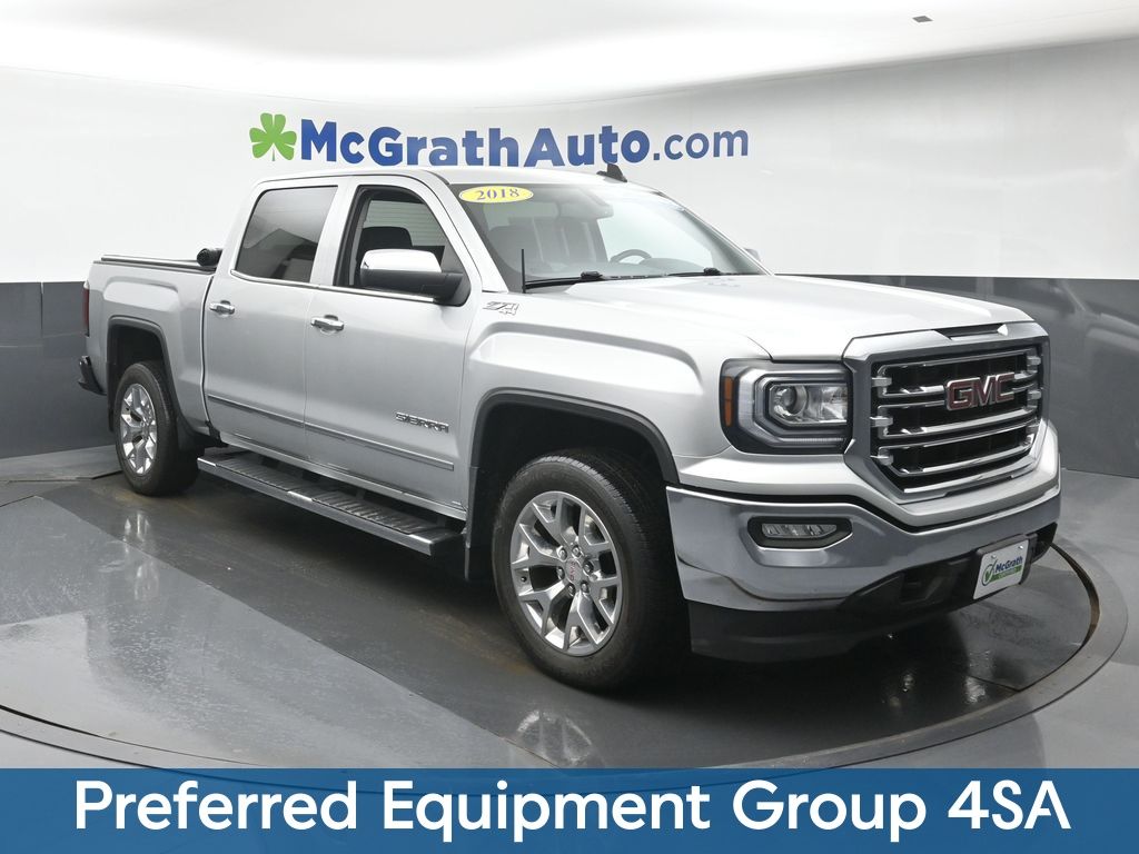 Elevate your driving experience with this exceptional 2018 GMC Sierra 1500 SLT. Boasting a powerful EcoTec3 5.3L V8 engine and 4-wheel drive capabilities, this truck is ready to tackle any terrain with confidence. Adorned in a sleek Silver exterior, this Sierra 1500 SLT exudes a commanding presence on the road. Step inside and you'll be surrounded by a wealth of premium amenities, including dual-zone automatic climate control, remote start, and a 110-volt power outlet. The GMC Infotainment System with 4G LTE connectivity keeps you entertained and connected on the go. This Sierra 1500 SLT has been meticulously maintained and is certified pre-owned, giving you the peace of mind that comes with a comprehensive inspection and warranty coverage. With only 94,868 miles, this truck still has plenty of life left to offer. Elevate your driving experience and make this 2018 GMC Sierra 1500 SLT your own. Visit our showroom today to take this exceptional truck for a test drive and discover the unparalleled capability and comfort it has to offer.