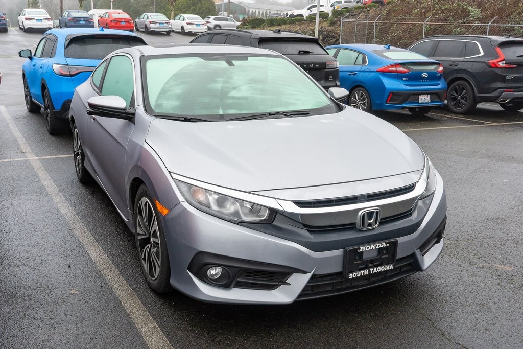 Recent Arrival! Certified. 2018 Honda Civic EX-L Lunar Silver Metallic 1.5L I-4 DI DOHC Turbocharged 2D Coupe CVT FWD CARFAX One-Owner. 31/40 City/Highway MPG Certification Program Details: Honda Factory Backed Comprehensive Coverage for 100 days or 5,000 miles whichever comes first. Includes Roadside Assistance and 1 complimentary oil change!