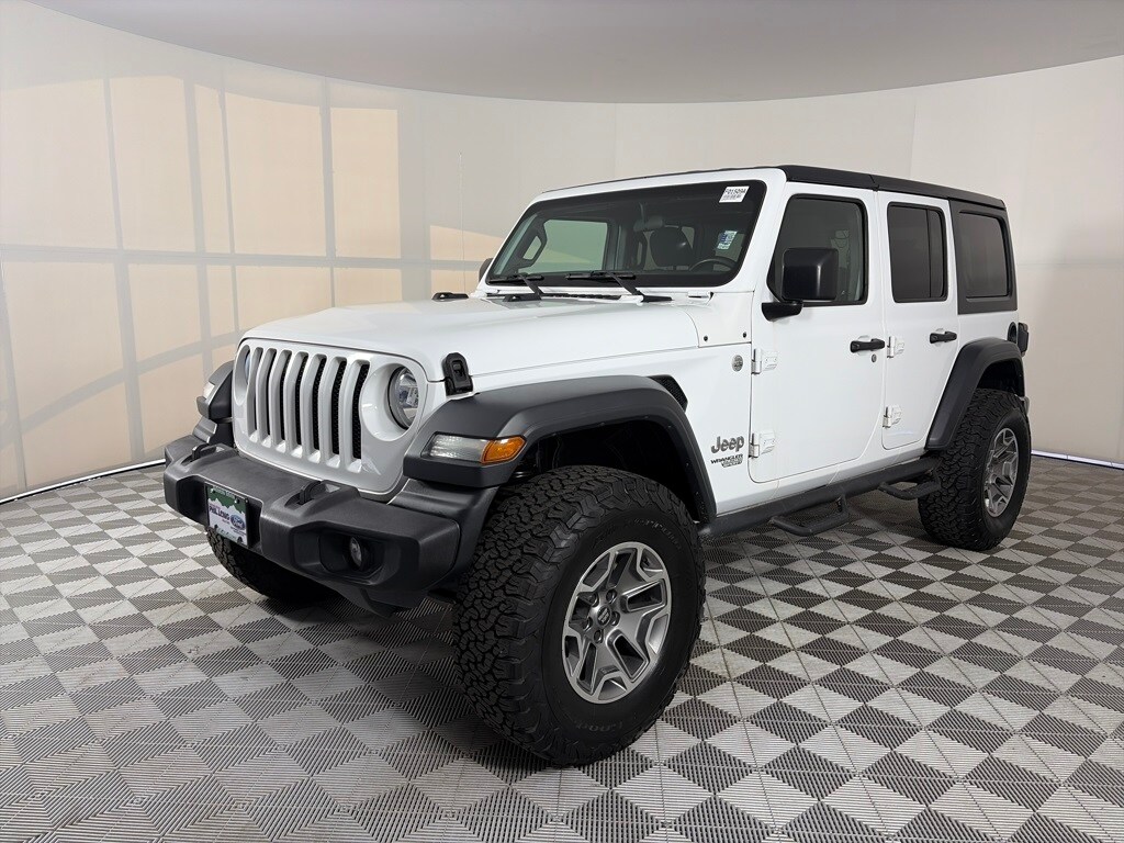 Ford Blue Certified. Back-Up Camera, Brake Actuated Limited Slip Differential, Keyless Start, CD Player, Bluetooth®, AUX Port, 4x4, Black 3-Piece Hard Top, Engine: 3.6L V6 24V VVT UPG I W/ESS, Transmission: 8-Speed Automatic (850RE), Safety Group, Technology Group, Quick Order Package 24S Sport S. Jeep Sport S with Bright White Clearcoat exterior and Black interior features a V6 Cylinder Engine with 285 HP at 6400 RPM. Every Blue Certified used vehicle must pass a 139-point inspection. Service available at any Ford Dealer in the 50 states. A manufacturer-backed 90-Day/4,000-Mile (whichever comes first) Comprehensive Limited Warranty, and Complimentary 24/7 Roadside Assistance. CARFAX Vehicle History Report included. Complimentary SiriusXM 3-month trial.