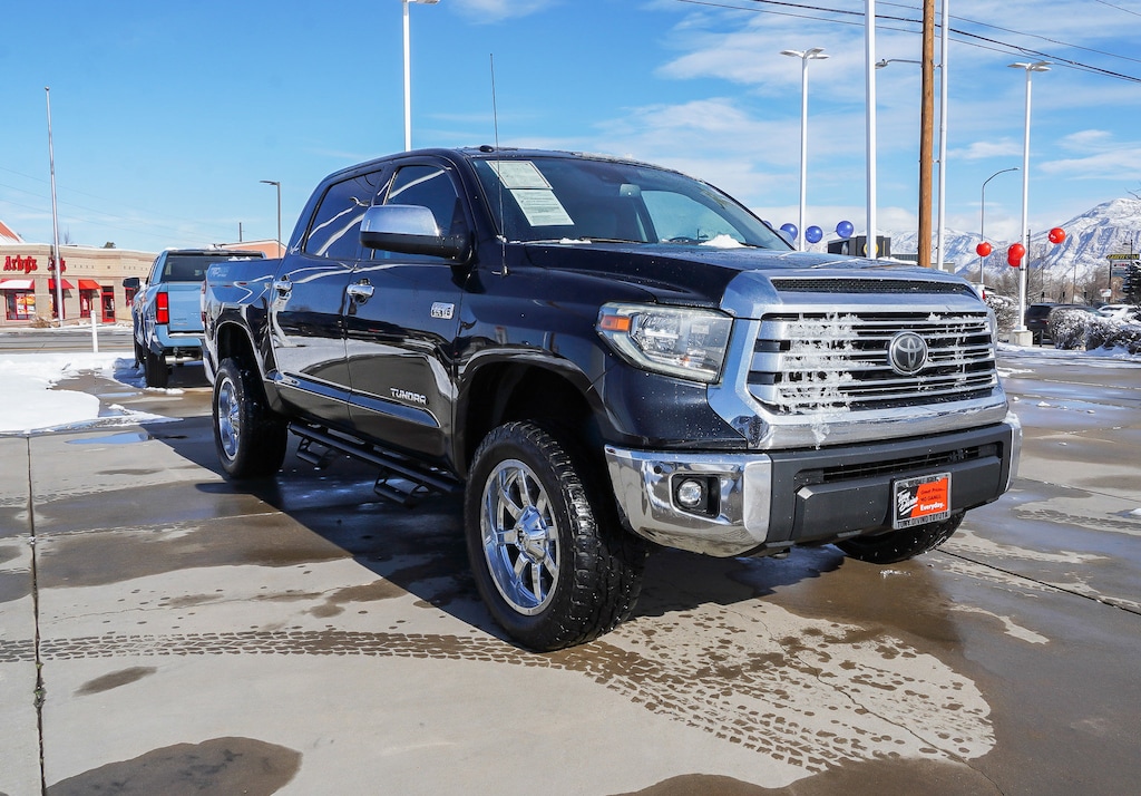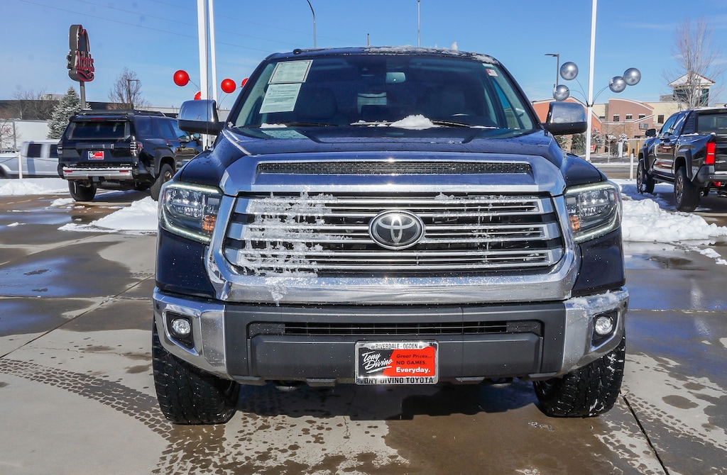 Only 58,173 miles! Scores 17 highway MPG and 13 city MPG! This Toyota Tundra 4WD boasts a Regular Unleaded V-8 5.7 L/346 engine powering this automatic transmission. Wireless phone connectivity, wheels: 20 x 8J split 5-spoke machined alloy, variable intermittent wipers with heated wiper park. This Toyota Tundra 4WD features the following options: turn-by-turn navigation directions, trip computer, transmission: electronic 6-speed automatic w/OD -inc: intelligence (ECT-i), sequential shift mode, uphill/downhill shift logic and tow/haul mode, transmission w driver selectable mode, sequential shift control and oil cooler, trailer wiring harness, Toyota Safety Sense P, tires: P275/55R20 AS, tailgate rear cargo access, steel spare wheel, splash guards. This Toyota Tundra 4WD is a superstar! ALG Residual Value Awards, Residual Value Awards, KBB.com 10 Most Awarded Brands, KBB.com Best Resale Value Awards. Stop by today. Come in for a quick visit at Tony Divino Toyota, 777 West Riverdale Rd, Riverdale, UT 84405 to claim your Toyota Tundra 4WD!