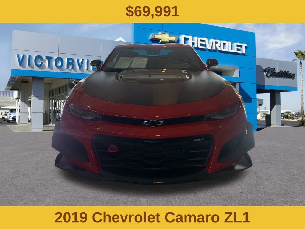 Red Hot 2019 Chevrolet Camaro ZL1 RWD 10-Speed Automatic 6.2L V8 Supercharged A pillar gauge is inoperable, Camaro ZL1, 2D Coupe, 6.2L V8 Supercharged, 10-Speed Automatic, RWD, Red Hot, Jet Black with Red Accents Leather. Why buy from Victorville Chevrolet? We have received Chevrolet’s Dealer of the Year award multiple years in a row. Been voted locally Best of the Desert by the Daily Press. We are the highest volume selling dealership in the high desert and treat you like family. At Victorville Chevrolet, we do things differently. Our team is built around accuracy, honesty, and accountability from your first interaction to the moment you drive home. We provide verified availability checked by real managers, transparent upfront pricing with no hidden fees, a relaxed zero-pressure experience, fast consistent communication, access to inventory across Southern California if we don’t have your exact match, and a better Chevy experience that starts right here at Victorville Chevrolet. Recent arrival! Odometer is 3776 miles below market average!