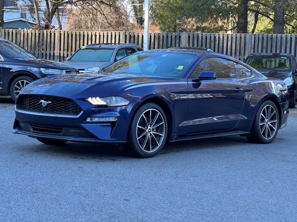 Seeing is believing!! Very clean, great price which includes Ford's Blue Advantage Certified 3 months or 4000 miles comprehensive coverage, great gas mileage, very low miles, traction control, navigation system, premium audio system with USB port, Sirius satellite radio, leather steering wheel with audio and cruise control, SYNC 3, back-up camera, power windows, locks and mirrors, power seats, heated leather seats, dual heated power mirrors with security approach lights, remote keyless entry with door keypad, blind spot monitoring system, fog lights, dual digital auto climate control, Apple CarPlay compatible, Android Auto compatible, Mustang EcoBoost Premium, EcoBoost 2.3L I4 GTDi DOHC Turbocharged VCT, 6-Speed Manual, Kona Blue, Ebony with Leather Bucket Seats, 9 speakers, adaptive cruise control, AM/FM radio: SiriusXM, auto-dimming rear-view mirror, automatic high beam, blind spot info system with cross-traffic alert, Equipment Group 201A, Ford Safe & Smart Package, front anti-roll bar, fully automatic headlights, lane-keeping alert, leather bucket seats with color accents, memory driver seat mirrors and ambient lighting, pre-collision assist with pedestrian detection, rain-sensing windshield wipers, rear anti-roll bar, speed-sensing steering, wheel and stripe package, wheels: 19" x 8.5" Machined-Face Aluminum. Kona Blue. No dealer preparation, reconditioning or pre-delivery fees added back to the Ourisman value price.