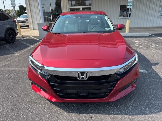 2019 Honda Accord EX in Radiant Red with Ivory interior. This Accord was a 1 owner and shows no accident history on the Carfax report. This Accord has been through Honda's 112 point certification process and comes with Honda's True Used Certified Warranty! 4 new tires along with fresh transmission fluid and brake fluid changes. 30/38 City/Highway MPG Clean Carfax. Carfax One-Owner. Odometer is 2811 miles below market average!