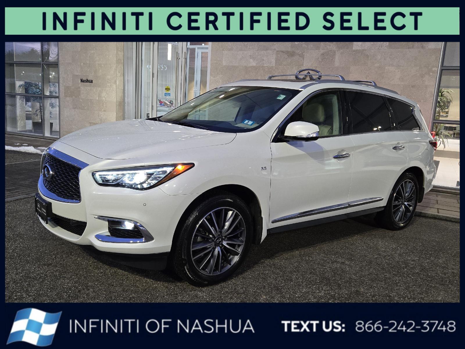 This Certified 2019 INFINITI QX60 LUXE, has a Majestic White exterior and a High Contrast Wheat interior color. 77,124 miles. Stock Number 1688T. You can connect with us by calling 844-278-1847. No Accidents! At INFINITI of Nashua, we're here to Serve you! Our staff is 100% dedicated to customer satisfaction and we understand that you need clear, transparent information throughout the car buying process. With our live market pricing philosophy, we offer the right cars at the right price, and the transparency to back it up! With INFINITI of Nashua, you get more than a great vehicle. You get a dealership partner that always puts you first! Don't hesitate...pick up the phone now and call us at 844-278-1847 speak with one of our friendly sales team members today!