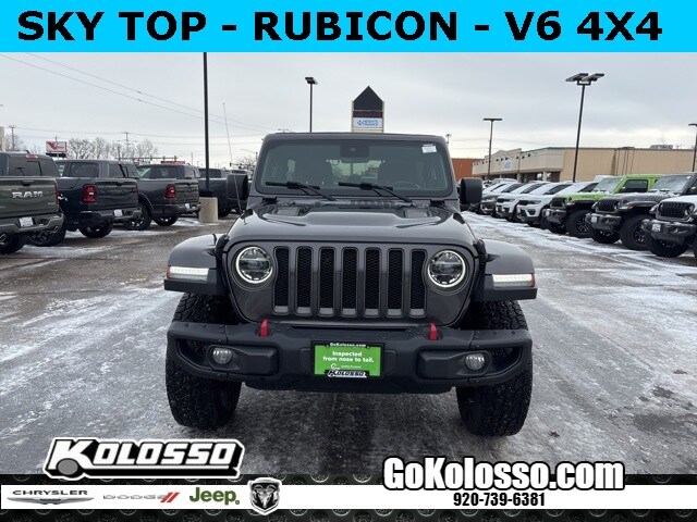 --Local trade in Rubicon 4x4 Unlimited with Sky Top convertible, body colored fender flares, leather heated seats, heated steering wheel, remote start, LED lighting group, factory navigation, Alpine audio system, blind spot monitor, steel bumper group and 17" black alloy wheels and much more. Clean Carfax. Recent arrival! Certified. Wrangler Unlimited Rubicon, 4D Sport Utility, 2.0L I4 DOHC, 8-Speed Automatic, 4WD, Granite Crystal Metallic Clearcoat, Black Leather, 1-Year SiriusXM Guardian Trial, 240 Amp Alternator, 4G LTE Wi-Fi Hot Spot, 5-Year SiriusXM Traffic Service, 5-Year SiriusXM Travel Link Service, 7 & 4 Pin Wiring Harness, 700 Amp Maintenance Free Battery, 8.4" Radio & Premium Audio Group, 8.4" Touchscreen Display, Advanced Brake Assist, Advanced Safety Group, Auto-Dimming Rear-View Mirror, Auxiliary Switches, Blind Spot & Cross Path Detection, Cargo Compartment Floor Mat, Cargo Group w/Trail Rail System, Cigar Lighter, Class II Receiver Hitch, Cold Weather Group, Daytime Running Lamps LED Accents, Emergency/Assistance Call, For Details Visit DriveUconnect.ca, Front LED Fog Lamps, Full Speed Forward Collision Warning Plus, GPS Navigation, HD Radio, Heated Front Seats, Heated Steering Wheel, LED Lighting Group, LED Reflector Headlamps, LED Taillamps, Low tire pressure warning, ParkSense Rear Park Assist System, Quick Order Package 28R, Radio: Uconnect 4C Nav w/8.4" Display, Removable Ash Tray, Safety Group, SiriusXM Traffic Plus, SiriusXM Travel Link, Smoker's Group, Steel Bumper Group, Steel Front Bumper, Steel Rear Bumper, Steering wheel mounted audio controls, Trailer Tow & HD Electrical Group.