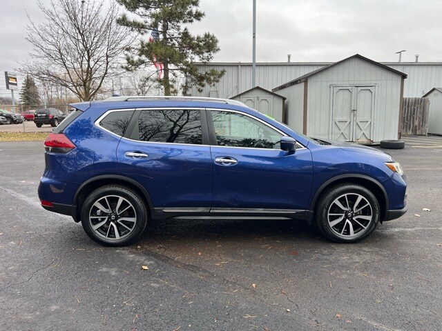 Certified. 3 month 3,000 mile Powertrain Warranty $0 deductible, 3 month / 3000 mile bumper to bumper warranty with no deductible, Accident Free Carfax History Report, Carfax One Owner!!, Rogue SL, 4D Sport Utility, 2.5L I4 DOHC 16V, CVT with Xtronic, AWD, Caspian Blue Metallic, Charcoal w/Leather Appointed Seat Trim, 19" Aluminum Alloy Wheels, Air Conditioning, Alloy wheels, Auto High-beam Headlights, Auto-dimming Rear-View mirror, Automatic temperature control, Black Splash Guards (Set of 4), Blind Spot Warning, Bose Audio, Brake assist, Bumpers: body-color, Chrome Rear Bumper Protector, Cruise control, Delay-off headlights, Driver door bin, Driver vanity mirror, Electronic Stability Control, First Aid Kit, Floor Mats & 2-PC Cargo Area Protector, Four wheel independent suspension, Front Bucket Seats, Front Center Armrest w/Storage, Front dual zone A/C, Front fog lights, Front reading lights, Fully automatic headlights, Garage door transmitter: HomeLink, Heated door mirrors, Heated Front Bucket Seats, Heated front seats, Heated steering wheel, Illuminated entry, Leather Appointed Seat Trim, Leather Shift Knob, Memory seat, Navigation System, NissanConnect featuring Apple CarPlay and Android Auto, Outside temperature display, Overhead console, Panic alarm, Passenger vanity mirror, Power door mirrors, Power driver seat, Power Liftgate, Power steering, Power windows, Radio data system, Radio: AM/FM/CD/AUX NissanConnect w/Navigation, Rear Parking Sensors, Rear seat center armrest, Rear window defroster, Rear window wiper, Remote keyless entry, Roof rack: rails only, Security system, Speed-sensing steering, Spoiler, Steering wheel mounted audio controls, Tachometer, Telescoping steering wheel, Tilt steering wheel, Traction control, Trip computer, Turn signal indicator mirrors, Variably intermittent wipers. CARFAX One-Owner. Clean CARFAX. 25/32 City/Highway MPG Odometer is 4246 miles below market average! Caspian Blue Metallic Nissan Rogue SL AWD 2.5L I4 DOHC 16V. We work for you to make your purchase fast and easy and affordable. Locally owned and operated since 1966. We are the largest Certified Pre-owned dealer in Michigan. With many benefits such as warranties on most vehicles, free service shuttle and state of the art facilities us at Golling Chrysler Dodge Jeep Ram Pre-Owned are always there for you.