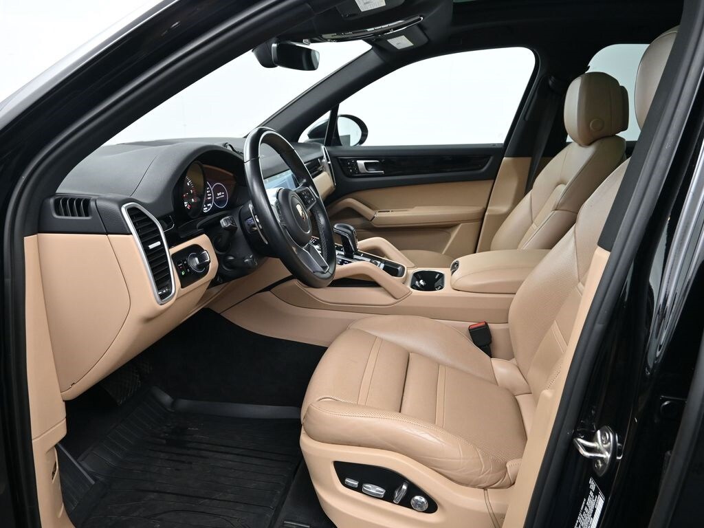 Certified. Clean CARFAX. 2019 Porsche Cayenne AWD Black 8-Speed Automatic with Tiptronic 3.0L V6. Porsche Approved Certified Pre-Owned. This Vehicle includes the following features and options: 14-Way Power Seats w/Memory Package, Premium Plus Package, Porsche Approved Certified Pre-Owned Certified, Black/Mojave Beige w/Leather Seat Trim w/Two-Tone Leather Interior, Heated Steering Wheel, Wheels: 19" Cayenne S, 10 Speakers, 4-Wheel Disc Brakes, 8-Way Power Seats, ABS brakes, Adaptive suspension, Air Conditioning, Alloy wheels, AM/FM radio: SiriusXM, Apple CarPlay, Automatic temperature control, Axle Ratio: TBD, Brake assist, Bumpers: body-color, Delay-off headlights, Driver door bin, Driver vanity mirror, Dual front impact airbags, Dual front side impact airbags, Electronic Stability Control, Exterior Parking Camera Rear, Four wheel independent suspension, Front anti-roll bar, Front Bucket Seats, Front Center Armrest, Front dual zone A/C, Front reading lights, Fully automatic headlights, Garage door transmitter: HomeLink, Heated door mirrors, Illuminated entry, Knee airbag, Leather Shift Knob, Low tire pressure warning, Navigation system: Porsche Communication Management (PCM), Occupant sensing airbag, Outside temperature display, Overhead airbag, Overhead console, Panic alarm, Partial Leather Seat Trim, Passenger door bin, Passenger vanity mirror, Porsche Communication Management, Power door mirrors, Power driver seat, Power Liftgate, Power passenger seat, Power steering, Power windows, Radio data system, Rain sensing wipers, Rear anti-roll bar, Rear fog lights, Rear reading lights, Rear seat center armrest, Rear side impact airbag, Rear window defroster, Rear window wiper, Remote keyless entry, Security system, Speed control, Split folding rear seat, Spoiler, Steering wheel mounted audio controls, Tachometer, Telescoping steering wheel, Tilt steering wheel, Traction control, Trip computer, Turn signal indicator mirrors, Variably intermittent wipers, and Voltmeter.