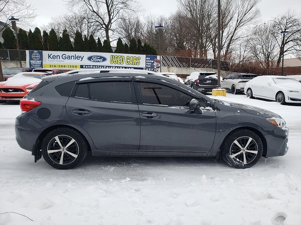 Certified. 2019 Magnetite Gray Metallic Subaru Impreza 2.0i Premium ACCIDENT FREE CAR FAX HISTORY, LOCAL TRADE, 16 Alloy Wheels, 4-Wheel Disc Brakes, 6 Speakers, ABS brakes, Air Conditioning, AM/FM radio: SiriusXM, Auto-Dimming Exterior Mirror (DIO), Auto-Dimming Mirror w/Compass & HomeLink, Brake assist, Delay-off headlights, Dual front impact airbags, Electronic Stability Control, Exterior Parking Camera Rear, Four wheel independent suspension, Heated door mirrors, Heated Front Bucket Seats, Illuminated entry, Knee airbag, Low tire pressure warning, Overhead airbag, Panic alarm, Power door mirrors, Power steering, Power windows, Radio: Subaru STARLINK 6.5 Multimedia Plus System, Rear window defroster, Rear window wiper, Remote keyless entry, Security system, Speed control, Speed-sensing steering, STARLINK/Apple CarPlay/Android Auto, Steering wheel mounted audio controls, Telescoping steering wheel, Tilt steering wheel, Traction control, Variably intermittent wipers. Clean CARFAX. 28/36 City/Highway MPG Odometer is 12158 miles below market average! Thank you for taking the time to look at this outstanding-looking 2019 Subaru Impreza. As you do your comparison shopping, you will see Ken Ganley Ford Parma offers some of the best values in the market. We will provide you a Carfax, Comprehensive Vehicle Inspection, and how we arrived at the price. We may not always be the lowest but if you want to know who is; we will show you that too. Call or stop by Ken Ganley Ford located in Parma Ohio to schedule a test drive today.