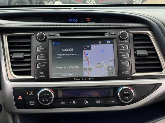 Certified and recently arrived, this Carfax One-Owner 2019 Toyota Highlander Limited AWD delivers premium comfort, advanced safety, and versatile performance in a well-equipped midsize SUV. Powered by an intelligent all-wheel-drive system, it features Toyota's Collision Warning System with Adaptive Cruise Control, Blind-Spot Monitors, and a rear backup camera for added confidence on every drive. The Limited Package elevates the experience with perforated leather seating, heated and ventilated front bucket seats, a power moonroof, memory driver seat, and a spacious third-row split-bench for flexible passenger and cargo needs. Inside, enjoy intuitive touchscreen controls, built-in navigation, Bluetooth hands-free connectivity, SiriusXM, and a premium 12-speaker JBL audio system with Entune Premium Audio. Additional highlights include multizone automatic climate control with rear air conditioning, power liftgate, rear parking sensors, 19-inch Chromtec alloy wheels, and a refined Blizzard Pearl exterior. Clean Carfax and rated at an efficient 20/26 city/highway MPG, this 2019 Toyota Highlander Limited AWD is an outstanding choice for drivers seeking luxury, safety, and reliability in one exceptional SUV.