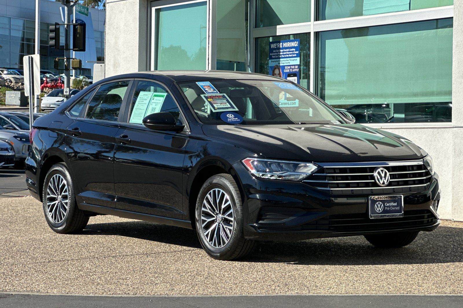 Certified. Black Uni 2019 Volkswagen Jetta 1.4T SE FWD 8-Speed Automatic with Tiptronic 1.4L TSI. This vehicle has received a minimum 75 point inspection and thorough reconditioning process making it one of the highest quality pre-owned vehicles on the market. Priced to sell this vehicle won't last long so don't delay call us today! (760) 745-7554.