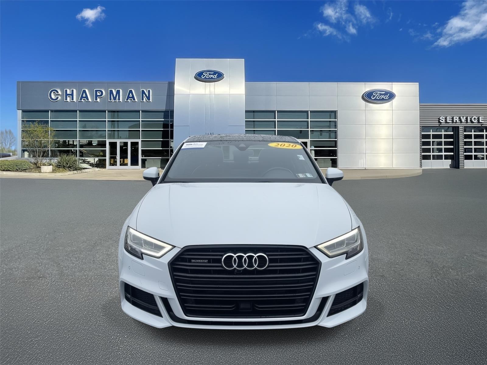 Thank you for choosing Chapman Ford Lancaster, this Glacier White Metallic 2020 Audi A3 Sedan S line Premium Plus is a great choice! Check out the following: City 22/ Hwy 30. Final Edition Package ($800 value). Audi Beam Rings. Sport Seats. 3 Spoke Flat-Bottom Multifunction Steering Wheel. Premium Plus Package ($3,000 value). 8-Way Power Passenger Seat with 4-Way Power Lumbar. Bang & Olufsen Sound System. Camera Distance Sensor. Full LED Headlights. High Beam Assist. Auto-Dimming Interior Mirror with Compass. Interior Storage Package. LED Taillights with Dynamic Turn Signals. Audi Phone Box with Wireless Charging. Navigation Package ($2,000 value). Audi Connect Online Services. Audi Virtual Cockpit. MMI Navigation Plus Radio with MMI Touch. Side and Rear Cross Traffic Assist Package. Audi Parking System Plus. Audi Side Assist.
