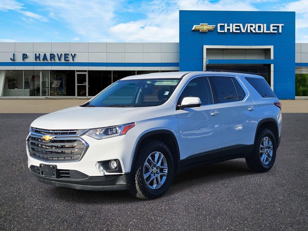 Clean CARFAX. 3rd row seating, Bluetooth hands free calling, non smoker, rear view camera, second row captain chairs, good tires. 2020 Chevrolet Traverse Summit White LT 1LT FWD 9-Speed Automatic 3.6L V6 SIDI VVT.