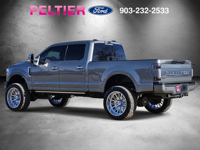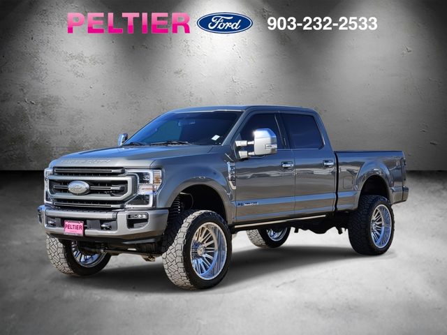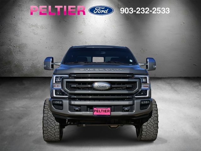 Recent Arrival! CARFAX One-Owner. Silver Spruce Metallic 2020 Ford Power Stroke 6.7L V8 DI 32V OHV Turbodiesel 4D Crew Cab F-250SD Platinum 10-Speed Automatic 4WD. Odometer is 10774 miles below market average! Certified. Clean Carfax, Carfax 1 Owner, Non smoker vehicle, factory navigation, power moonroof, leather seats, spray on bedliner, heated front seats, heated/cooled front seats, panoramic vista moonroof, rear view camera, trailer tow package, V8 power, 4 wheel drive - off road warrior, low mileage, Bluetooth hands free calling, power deploying running boards, power driver's seat, 36 gallon ext range fuel tank, 703A Equipment Group, remote start system, heated steering wheel, platinum package, 20" polished wheels, rain-sensing wipers, push button start, power equipment group, power sliding rear window, reverse sensing system, smart charging USB ports, FordPass Connect.