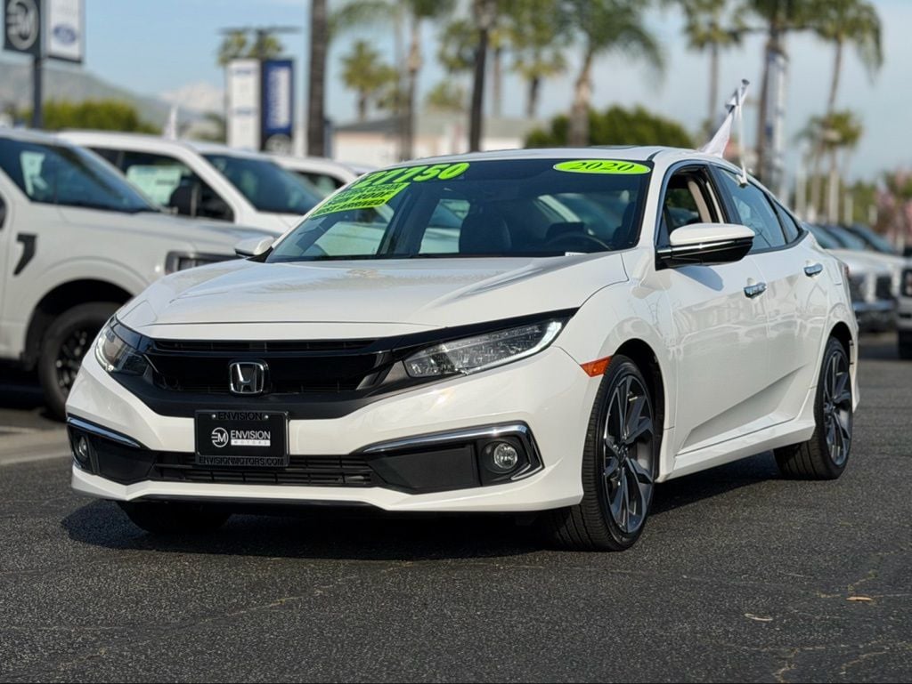 Certified. 2020 Honda Civic Touring FWD CVT 1.5L I-4 DI DOHC Turbocharged Civic Touring, 4D Sedan, 1.5L I-4 DI DOHC Turbocharged, CVT, FWD, Black w/Leather-Trimmed Seating Surfaces. Recent Arrival! 30/38 City/Highway MPG. Call For Availability: (626) 415-3063. Certification Program Details: BLUE CERTIFIED USED 3MO or 4000 MI Comprehensive with Roadside assistance. 16-TIME PRESIDENT'S AWARD WINNER: awarded only to a few dealerships that provided the very highest levels of customer satisfaction received each year. Envision Ford & Lincoln of Duarte has won this award 16 times. Come and experience it today! Call for all the details (626) 415-3063 or visit us at Envision Ford & Lincoln of Duarte at 1031 Central Ave, Duarte, CA 91010. We look forward to serving you! Peace of mind. Vehicle history report. Title information. Odometer readings. Accident data (if applicable). Service history. Vehicle usage. Recall information (if applicable). Warranty status. Free CarFax report. A name you can trust. Envision Ford of Duarte is dedicated to your satisfaction before, during, and after your purchase. We'll go the extra mile to take care of you.