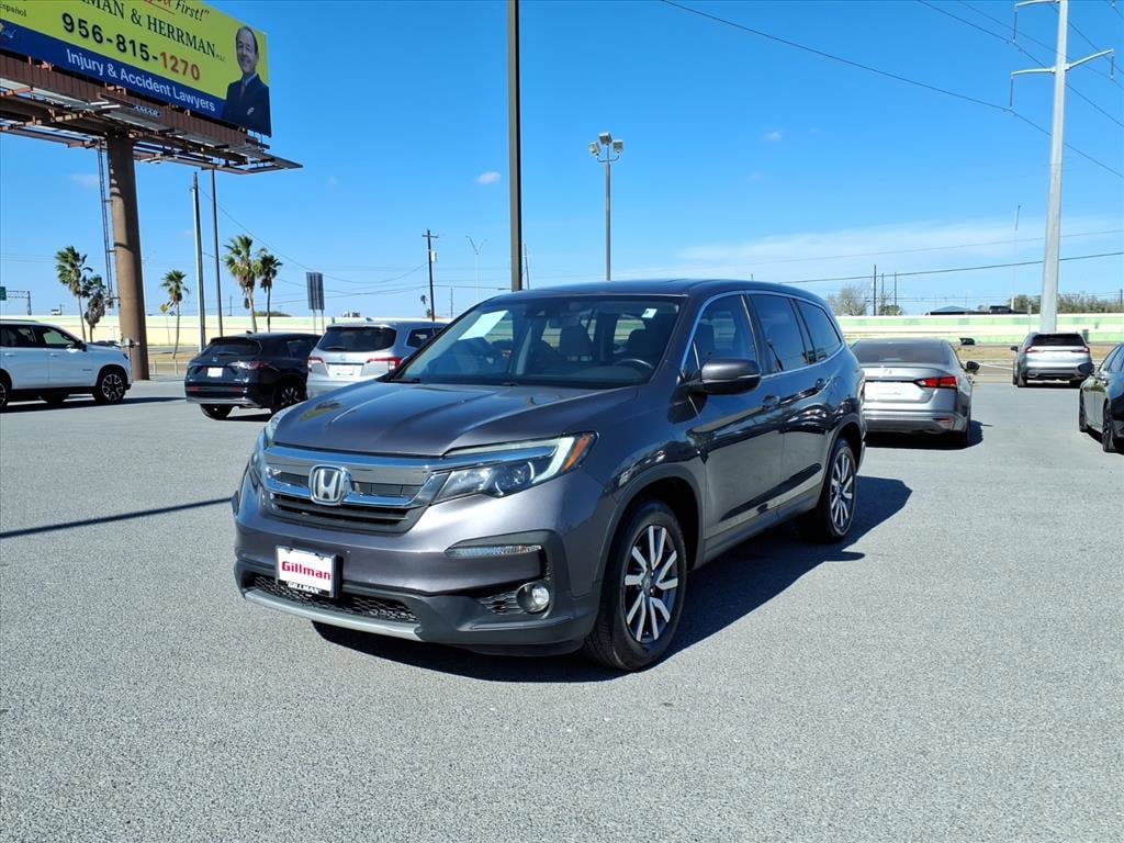 Gillman's Lifetime Engine Warranty lasts as long as you own your vehicle - free with the Gillman Pre-Owned Promise. If the vehicle isn't right for you, return it in purchase condition within 2 days or 200 miles as part of our Happy-Driving Guarantee. Discover comfort and versatility in this DK. Gray 2020 Honda Pilot EX-L SUV. Perfect for families or those who need extra space, the Pilot EX-L offers seating for up to eight and a spacious cargo area. Enjoy premium features like leather-trimmed upholstery, heated front seats, a power-operated liftgate, and a power moonroof for a touch of luxury. Stay connected with Apple CarPlay and Android Auto integration, an 8-inch touchscreen, Bluetooth, and the HondaLink app for smart convenience. Safety is top priority with adaptive cruise control, lane keeping assist, blind spot monitoring, rear cross traffic alert, automatic emergency braking, and pedestrian detection. With three rows, rear air conditioning, 15 cupholders, and multiple USB ports, this Pilot is designed for comfort and practicality. Experience Honda's renowned reliability and advanced driver assistance features in this well-equipped 2020 Pilot EX-L today. All vehicles subject to prior sale. We are not responsible for typographical errors and may change information without notice. Photos may not depict the actual vehicle. Tax, title, and license fees not included. Dealer Discount available to all buyers. Vehicles purchased from Gillman Automotive Group include a Bring It Back Guarantee: return the vehicle in purchase condition within two days or 200 miles. New current-model-year vehicles and qualifying pre-owned vehicles (under 90,000 miles and less than 7 years old) are eligible. Guarantee is non-transferable and has no cash value. Lifetime Warranty available on select pre-owned vehicles. See dealer for details; restrictions may apply.