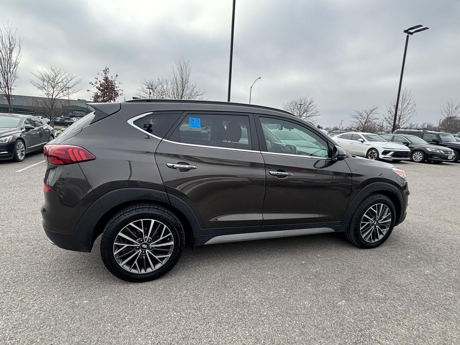 Certified Carfax No Accidents! Carfax One Owner! This 2020 Hyundai Tucson Ultimate is Sage Brown with Black interior complete with these key features. The 2020 Hyundai Tucson Ultimate stands at the top of the Tucson lineup, delivering premium comfort, advanced technology, and confident performance in a stylish compact SUV package. Designed for drivers who want elevated refinement without sacrificing practicality, the Tucson Ultimate blends upscale features with Hyundai's signature reliability and value. Under the hood, the 2020 Tucson Ultimate is powered by a 2.4L 4-cylinder engine that provides smooth acceleration and dependable fuel efficiency, making it ideal for both city commuting and long-distance travel. Its responsive 6-speed automatic transmission and available HTRAC all-wheel drive inspire confidence in a wide range of road and weather conditions. Inside, the Tucson Ultimate showcases a luxurious cabin with heated and ventilated leather front seats, a panoramic sunroof, and dual-zone climate control. The interior feels modern and intuitive, highlighted by an 8-inch touchscreen navigation system, Apple CarPlay, Android Auto, and a premium Infinity audio system that enhances every drive. Safety comes standard with Hyundai's comprehensive SmartSense suite, including Forward Collision-Avoidance Assist, Blind-Spot Collision Warning, Lane Keeping Assist, Smart Cruise Control, and a Surround View Monitor that provides a 360° perspective for effortless parking and maneuvering. With its bold exterior styling, LED lighting, hands-free smart liftgate, and refined ride quality, the 2020 Hyundai Tucson Ultimate is the perfect blend of sophistication, versatility, and advanced technology-making it one of the most appealing compact SUVs in its class.