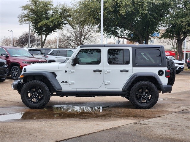 Certified. Carfax One-Owner. Clean Carfax. Bright White Clearcoat 2020 Jeep Wrangler Unlimited Sport Altitude Unlimited Sport Altitude 8-Speed Automatic 3.6L V6 24V VVT 4WD Altitude Package, LED Headlamp & Fog Lamp Group (Front LED Fog Lamps and LED Reflector Headlamps), Quick Order Package 23L Altitude (Anti-Lock 4-Wheel Disc HD Brakes, Automatic Headlamps, Black 3-Piece Hard Top, Black Interior Accents, Body Color Grille w/Gloss Black, Bridgestone Brand Tires, Deep Tint Sunscreen Windows, Freedom Panel Storage Bag, Front 1-Touch Down Power Windows, Heavy Duty Suspension w/Gas Shocks, Leather Wrapped Steering Wheel, Matte Black Jeep Badge, MOPAR Hardtop Headliner, No Soft Top, Power Heated Mirrors, Rear Window Defroster, Rear Window Wiper/Washer, Remote Keyless Entry, Security Alarm, Speed Sensitive Power Locks, Sun Visors w/Illuminated Vanity Mirrors, Wheels: 18" x 7.5" Gloss Black Aluminum, Wizard Black Instrument Panel Bezels, and Wrangler Decal), Quick Order Package 24L Altitude, Safety Group (Blind Spot & Cross Path Detection, Injection Molded Black Rear Bumper, LED Taillamps, and ParkSense Rear Park Assist System), Technology Group (1-Year SiriusXM Radio Service, 7.0" Touchscreen Display, Air Conditioning w/Auto Temperature Control, Air Filtering, Cluster 7.0" TFT Color Display, GPS Antenna Input, Integrated Center Stack Radio, Radio: Uconnect 4 w/7" Display, SiriusXM Satellite Radio, and USB Host Flip), FCA US LLC Certified Pre-Owned Certified, 3.45 Rear Axle Ratio, 4-Wheel Disc Brakes, 8 Speakers, ABS brakes, Air Conditioning, AM/FM radio, Anti-Spin Differential Rear Axle, Apple CarPlay (DISC), Aux Battery, Brake assist, Cloth Low-Back Bucket Seats, Compass, Delay-off headlights, Driver door bin, Driver vanity mirror, Dual front impact airbags, Dual front side impact airbags, Electronic Stability Control, Front anti-roll bar, Front Bucket Seats, Front Center Armrest w/Storage, Front fog lights, Front reading lights, Google Android Auto (DISC), Integrated roll-over protection, Integrated Voice Command w/Bluetooth, Low tire pressure warning, MOPAR All-Weather Floor Mats (DISC), Non-Lock Fuel Cap w/o Discriminator, Normal Duty Suspension, Occupant sensing airbag, Outside temperature display, ParkView Rear Back-Up Camera, Passenger door bin, Passenger vanity mirror, Power steering, Radio data system, Radio: Uconnect 3 w/5" Display, Rear anti-roll bar, Rear reading lights, Speed control, Split folding rear seat, Steering wheel mounted audio controls, Stop-Start Dual Battery System, Tachometer, Telescoping steering wheel, Tilt steering wheel, Traction control, Trip computer, Variably intermittent wipers, and Wheels: 17" x 7.5" Black Steel Styled. FCA US LLC Certified Pre-Owned Details: Vehicles Up to 75,000 Miles and/or 5 Model Years. 24-Hour Towing & Roadside Assistance, Car Rental Allowance, Carfax Vehicle History Report and an Introductory 3-month Subscription to SiriusXM Satellite Radio & Certified Warranty Upgrades. Transferable Warranty. Powertrain Limited Warranty: 84 Month/100,000 Mile (whichever comes first) from original in-service date. Limited Warranty: 3 Month/3,000 Mile (whichever comes first) after new car warranty expires or from certified purchase date. Roadside.