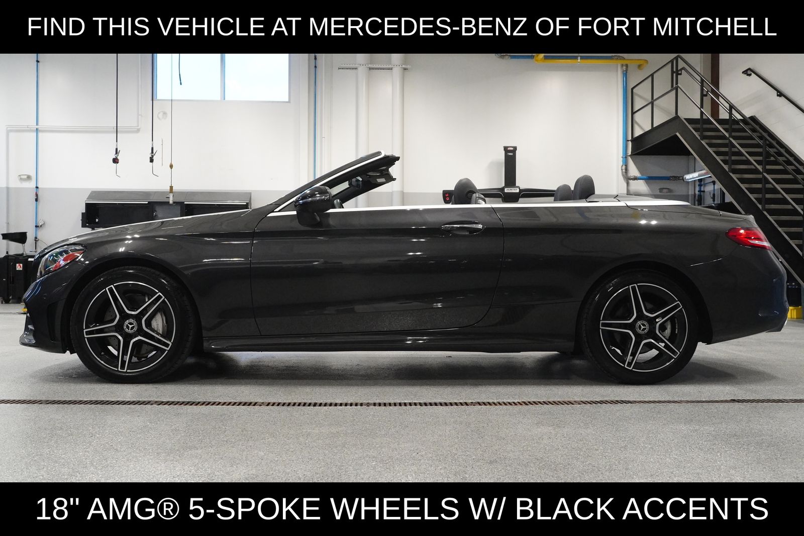 Mercedes-Benz of Fort Mitchell offers this certified pre-owned 2020 Mercedes-Benz C-Class C 300 4MATIC Cabriolet. The vehicle features a Graphite Gray Metallic exterior and Magma Gray interior. It comes with a range of highlights and packages, including the AMG Line, Night Package, Parking Assistance Package, PARKTRONIC with Active Parking Assist, Surround View System, and Rear Cross-Traffic Alert. This C-Class is equipped with all-wheel drive, a 2.0L I-4 turbo engine, and a 9-speed automatic transmission. The car has 24,374 miles on the odometer and is available for purchase at Mercedes-Benz of Fort Mitchell.