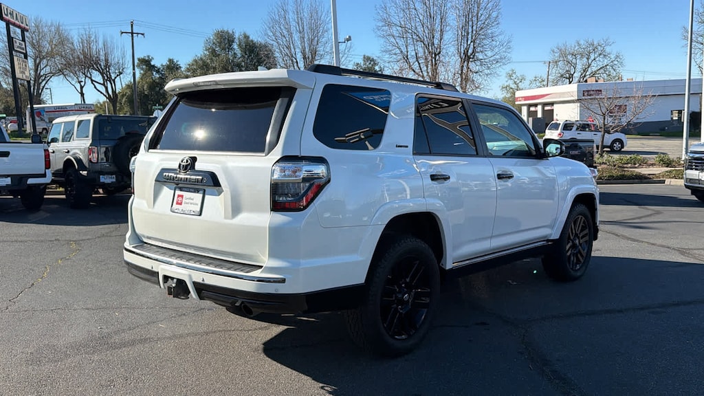Nightshade trim. Toyota Certified, ONLY 53,912 Miles! WAS $40,350, PRICED TO MOVE $2,300 below Kelley Blue Book! Heated Leather Seats, Moonroof, Navigation, PAINT PROTECTION FILM, Trailer Hitch, Aluminum Wheels, 4x4. CLICK ME! Reducing from $40,350. This 4Runner is priced $2,300 below Kelley Blue Book. Certified vehicles must pass a thorough 160-point inspection, 7 Year/100,000 Mile Limited Powertrain Warranty, 12-Month/12,000-Mile Limited Comprehensive Warranty. Some of our pre-owned vehicles may have unrepaired safety recalls. Check vinrcl.safercar.gov/vin/, 7 Year Roadside Assistance includes jump starts, lockouts, fuel delivery, flat tire service and more, Free CarFax Vehicle History Report included. Our commitment to treating you in a neighborly fashion extends from our inventories and auto repair service to our no-frills, easy-to-comprehend auto financing. This comes not only in the form of car loans and leasing service for drivers from Redding, Chico, California, but also a tenacious spirit dedicated to getting the flexible terms you deserve.