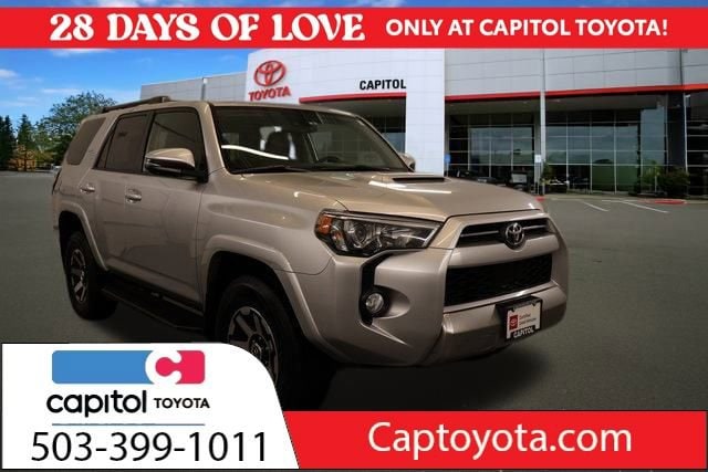 All roads lead to Capitol Toyota and we are excited to offer this 2020 Toyota 4Runner TRD Off-Road Premium. This exceptional SUV is ready to take you on any adventure, whether it's conquering the trails or navigating the city streets with ease. Equipped with a powerful 4.0L V6 engine and 4-wheel drive, this 4Runner is built to tackle any terrain. The TRD Off-Road Premium package adds a host of premium features, including a premium audio system, dynamic navigation, and a moonroof, ensuring your driving experience is both thrilling and comfortable. Safety is a top priority, and this 4Runner delivers with advanced technologies like the Collision Avoidance and Warning Systems, as well as Lane Keeping Assist. The backup camera and Bluetooth connectivity further enhance the driving experience, keeping you connected and in control. Exterior styling is bold and aggressive, with a rugged yet refined appearance that commands attention. The silver exterior color is complemented by the black roof rails, creating a striking contrast that exudes confidence on the road. Inside, the cabin is outfitted with premium Softex synthetic leather seating, heated front seats, and a power-adjustable driver's seat, providing exceptional comfort and convenience. The split-folding rear seat and ample cargo space make this 4Runner the perfect companion for your active lifestyle, whether you're embarking on a weekend getaway or tackling your daily commute. We also provide a quick and easy buying process for your vehicle. At Capitol it is your way everyday on the parkway!!!