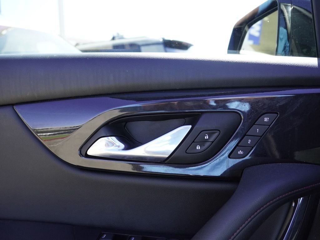 The vehicle features a 9-speed automatic transmission, a front-wheel drive, and a V6 engine. The exterior is black with a red bowtie emblem. The interior is black with a red leather seat. The vehicle is certified and has been used for a short time. It is available for purchase at the dealership.