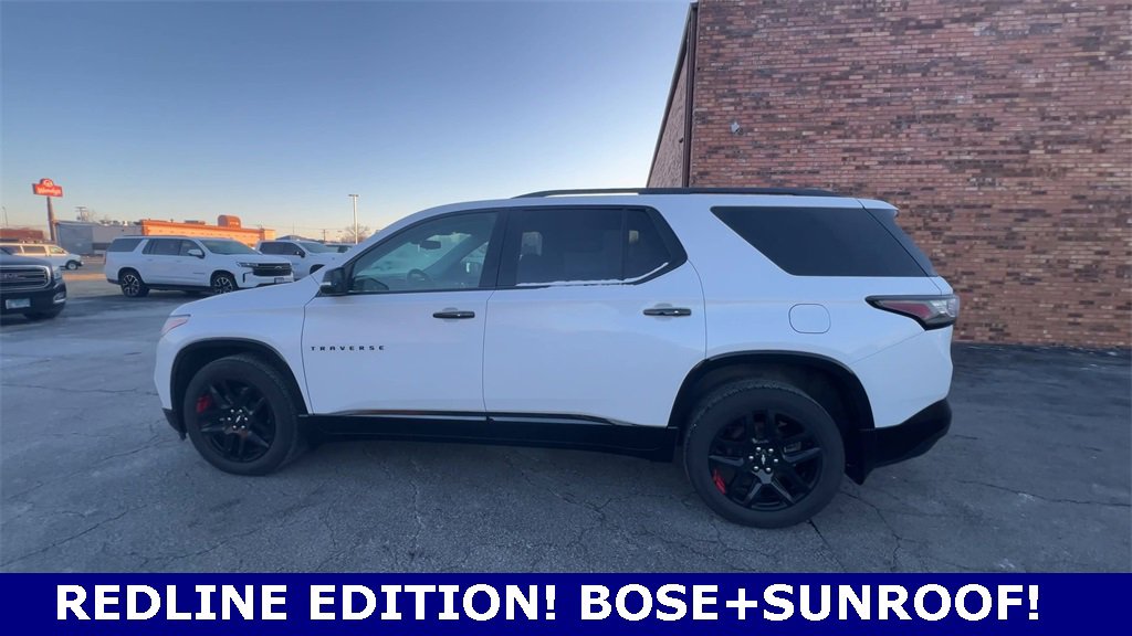 Priced below KBB Fair Purchase Price! Clean CARFAX. Certified. Iridescent Pearl Tricoat 2021 Chevrolet Traverse Premier AWD 9-Speed Automatic 3.6L V6 SIDI VVT. Odometer is 17285 miles below market average! Certification Program Details: CarBravo Certified: Vehicles that are 10 model years old or less and have 100,000 miles or less at the time of sale. These vehicles come with a standard 12-month/12,000-mile limited bumper-to-bumper warranty. Discover the D'Arcy Difference! We care - we are here and we are ready to help! Stop by www.darcyautos.com today to see up to date information, including showroom and service hours, and how to make an appointment or schedule delivery. This vehicle has the Pulse Brake Light installed to help reduce rear end collisions. All vehicles are available at D'Arcy Motors. Our business philosophy, which is to sell cars one car at a time and to make the guest the most important part of the process, has remained the same since 1991. Putting our guests first means being a good corporate citizen and investing back into our community. We look forward to serving you!