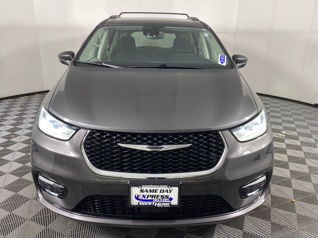 Certified. 2021 Chrysler Pacifica Touring Granite Crystal Metallic Clearcoat Clean CARFAX. CARFAX One-Owner. Cold Weather Group, Heated Front Seats, Heated Steering Wheel, Leather Wrapped Steering Wheel, Quick Order Package 27W. Odometer is 37266 miles below market average! 19/28 City/Highway MPG FCA US LLC Certified Pre-Owned Details: Powertrain Limited Warranty: 84 Month/100,000 Mile (whichever comes first) from original in-service date. Warranty Deductible: $100. 125 Point Inspection. Roadside Assistance. Limited Warranty: 3 Month/3,000 Mile (whichever comes first) after new car warranty expires or from certified purchase date. Vehicles Up to 75,000 Miles and/or 5 Model Years. 24-Hour Towing & Roadside Assistance, Car Rental Allowance, CARFAX Vehicle History Report and an Introductory 3-month Subscription to SiriusXM Satellite Radio & Certified Warranty Upgrades. Transferable Warranty. Vehicle History.