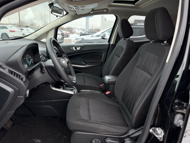 This 2021 Ford EcoSport SE is a well-equipped and certified pre-owned vehicle that offers exceptional value and peace of mind. With its sleek black exterior, turbocharged engine, and impressive fuel efficiency, this EcoSport is the perfect blend of style, performance, and practicality. This EcoSport is backed by Ford's Gold Certified program, which means it has undergone a rigorous 172-point inspection and comes with a comprehensive warranty and roadside assistance. You can drive with confidence knowing that this vehicle has been meticulously maintained and is ready to provide you with years of reliable service. Under the hood, you'll find a peppy EcoBoost 1.0L I3 engine mated to a smooth-shifting 6-speed automatic transmission. This powertrain delivers an impressive 27 mpg in the city and 29 mpg on the highway, making it an excellent choice for your daily commute or weekend adventures. The interior of the EcoSport is equally impressive, with a host of premium features that include SYNC 3 infotainment system, dual-zone automatic climate control, heated front seats, and a power moonroof. The spacious cabin and versatile cargo area provide ample room for passengers and their belongings, making this SUV a practical and comfortable choice. With its impressive features, certified status, and exceptional value, this 2021 Ford EcoSport SE is an opportunity you don't want to miss. We invite you to schedule a test drive and experience the difference for yourself. Contact us today to learn more about this exceptional vehicle and how it can enhance your driving experience.