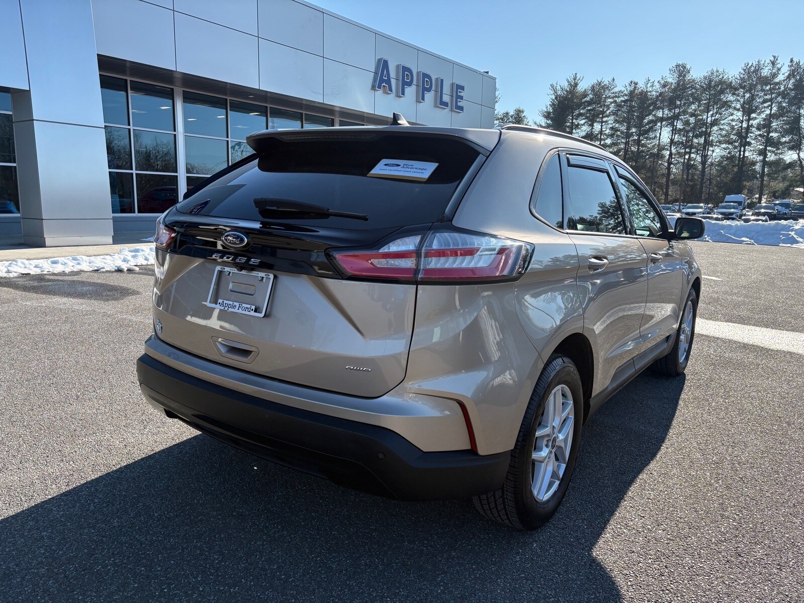 Desert Gold 2021 Ford Edge SE AWD 8-Speed Automatic EcoBoost 2.0L I4 GTDi DOHC Turbocharged VCT AWD. Priced below KBB Fair Purchase Price! Odometer is 11993 miles below market average! 21/28 City/Highway MPG.