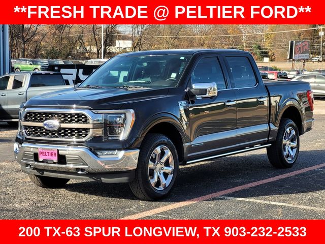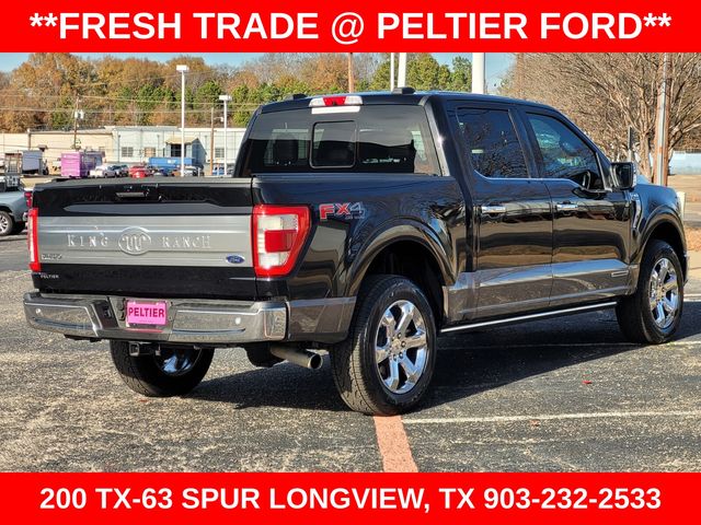 Recent Arrival! Clean Carfax. Carfax One-Owner. Black 2021 Ford 3.5L PowerBoost Full-Hybrid V6 4D SuperCrew F-150 King Ranch 10-Speed Automatic 4WD Certified. 3.5L PowerBoost Full-Hybrid V6, 4WD, 20" Machined-Aluminum Wheels, 4x4 FX4 Off-Road Bodyside Decal, Active Park Assist 2.0, BlueCruise Hands-Free Driving, Bright Belt Moldings, Chrome Door Handles with Body-Color Strap, Chrome Skull Caps on Exterior Mirrors, Class IV Trailer Hitch Receiver, Electronic Locking with 3.31 Axle Ratio, Equipment Group 601A High, Ford Co-Pilot360 Active 2.0 Package, FX4 Off-Road Package, Hill Descent Control, Integrated Trailer Brake Controller, King Ranch Chrome Appearance Package, Monotube Rear Shocks, Multi-Contour Driver and Passenger Seats, Navigation System, Off-Road Tuned Front Shock Absorbers, Power Tailgate, Power-Deployable Running Boards, Pro Trailer Backup Assist, Radio: B&O Unleashed Sound System by Bang & Olufsen, Rock Crawl Mode, Trailer Tow Package, Tray Style Floor Liner, Wheels: 20" Chrome-Like PVD.