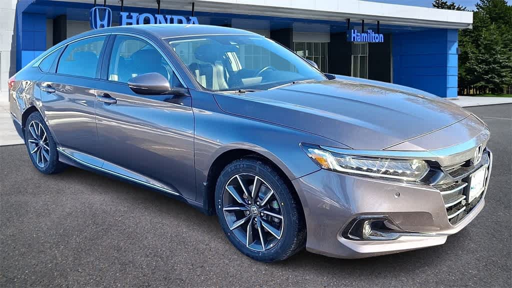 Certified. Hamilton Honda is proud to offer this terrific 2021 Honda Accord in Modern Steel Metallic. This vehicle comes with the following features; Price does not include licensing costs, registration fees, taxes and dealer doc fee of $999 which are to be paid by the consumer. Power Sunroof/Moonroof, Rear Back Up Camera, Honda Certified, One Owner, Leather Interior, Android Auto + Apple Carplay, Lifetime Car Washes, Accord EX-L, 4D Sedan, 1.5T I4 DOHC 16V Turbocharged VTEC, CVT, FWD, Black w/Leather-Trimmed Seats. Set For Life(tm) All Honda Certified Pre-owned vehicles purchased at Hamilton Honda also receive our Set For Life(tm) benefits which include: Lifetime Oil & Filter Changes, and Car Washes. These additional benefits are intended to make buying and owning your next vehicle from us an unforgettable one. CARFAX One-Owner. EX-L FWD CVT 1.5T I4 DOHC 16V Turbocharged VTEC. Recent Arrival! 30/38 City/Highway MPG.